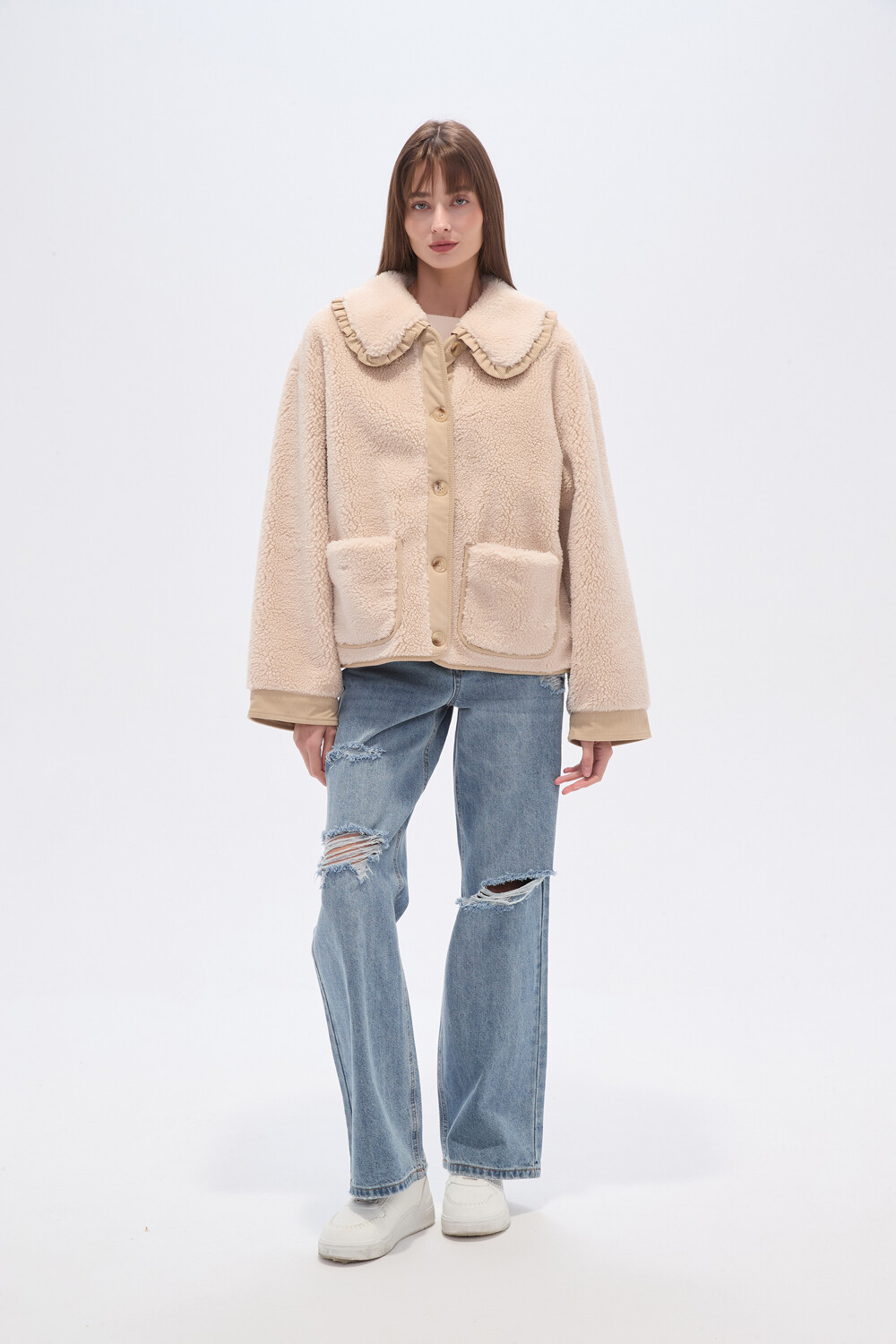 $ 1.835 Nuevos Chaqueta poliester, corderito, holgado, con botones y cuello bebe