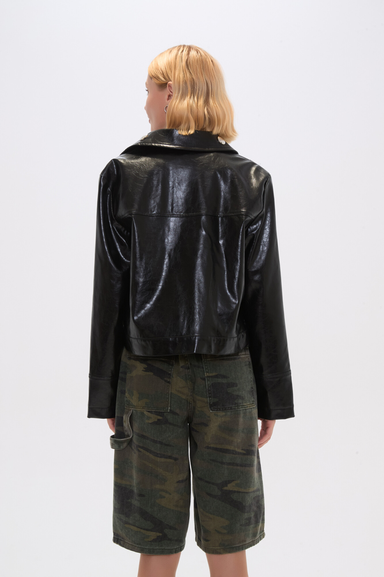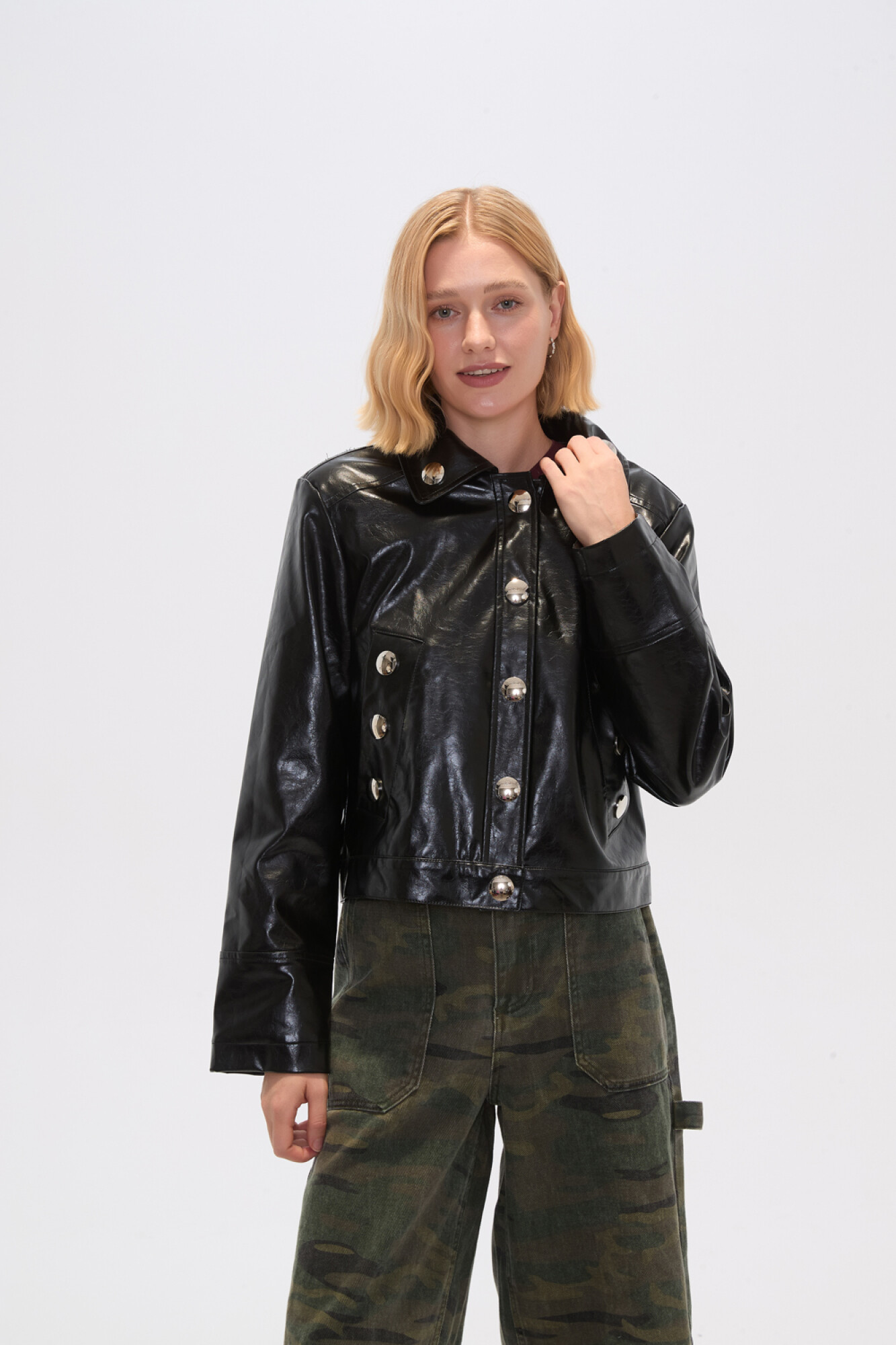 Nuevos Recibilo en Chaqueta eco-cuero, con botones, con tachas y cuello camisa