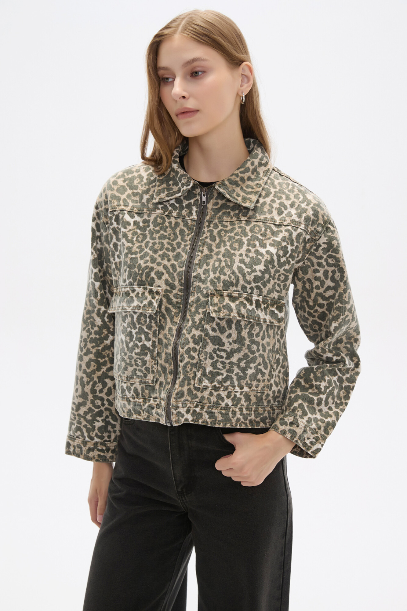 $ 1.359 Nuevos Recibilo en Chaqueta jean, aop, bolsillos, estampado, entallado, con cierre y cuello camisa