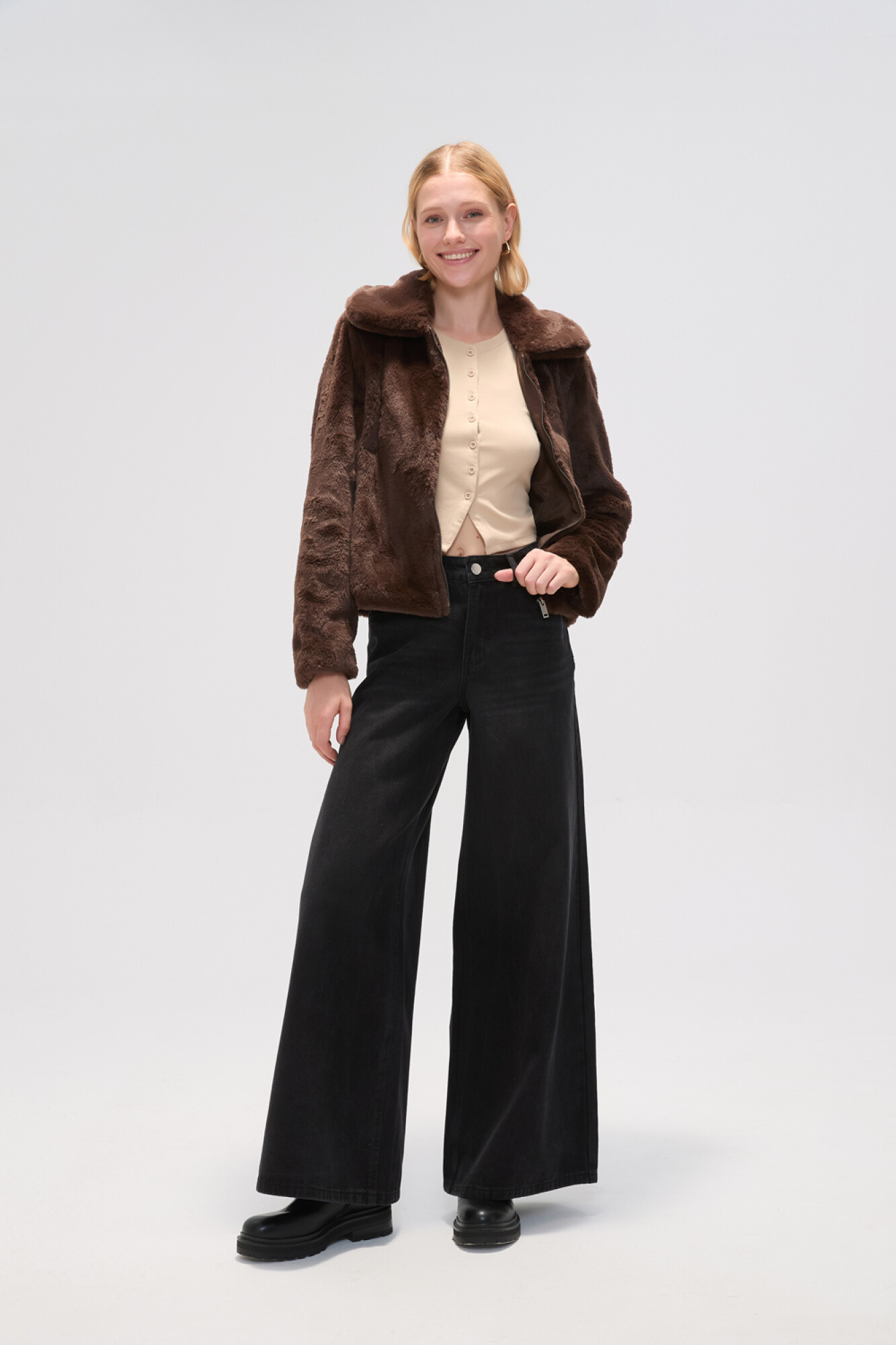 Nuevos Chaqueta poliester, al cuerpo, con cierre y cuello alto