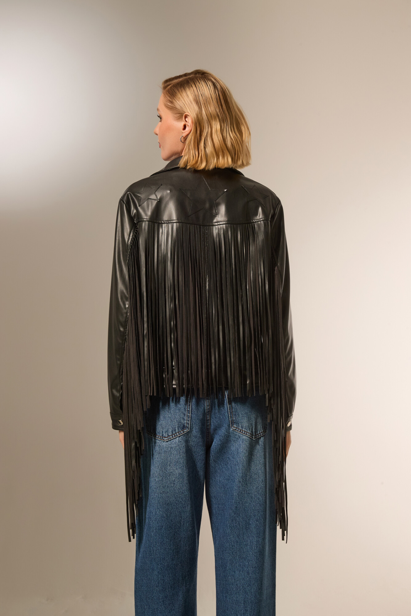 $ 1.687 Nuevos Recibilo en Chaqueta eco-cuero, apliques, bolsillos, holgado, con cierre, con flecos y cuello camisa