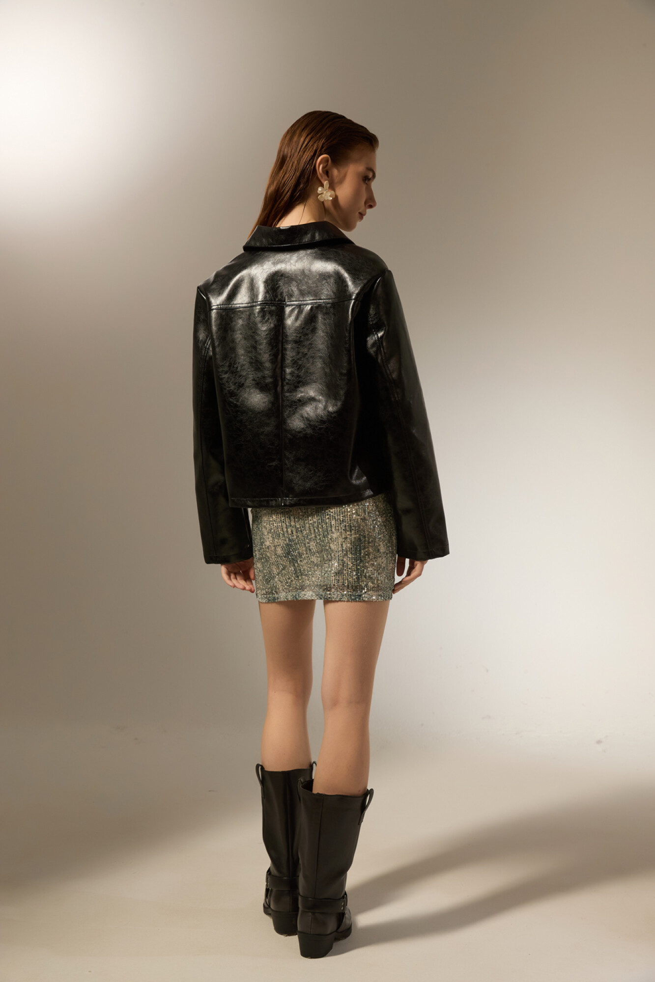 $ 1.495 Nuevos Recibilo en Chaqueta eco-cuero, bolsillos, con botones y cuello camisa