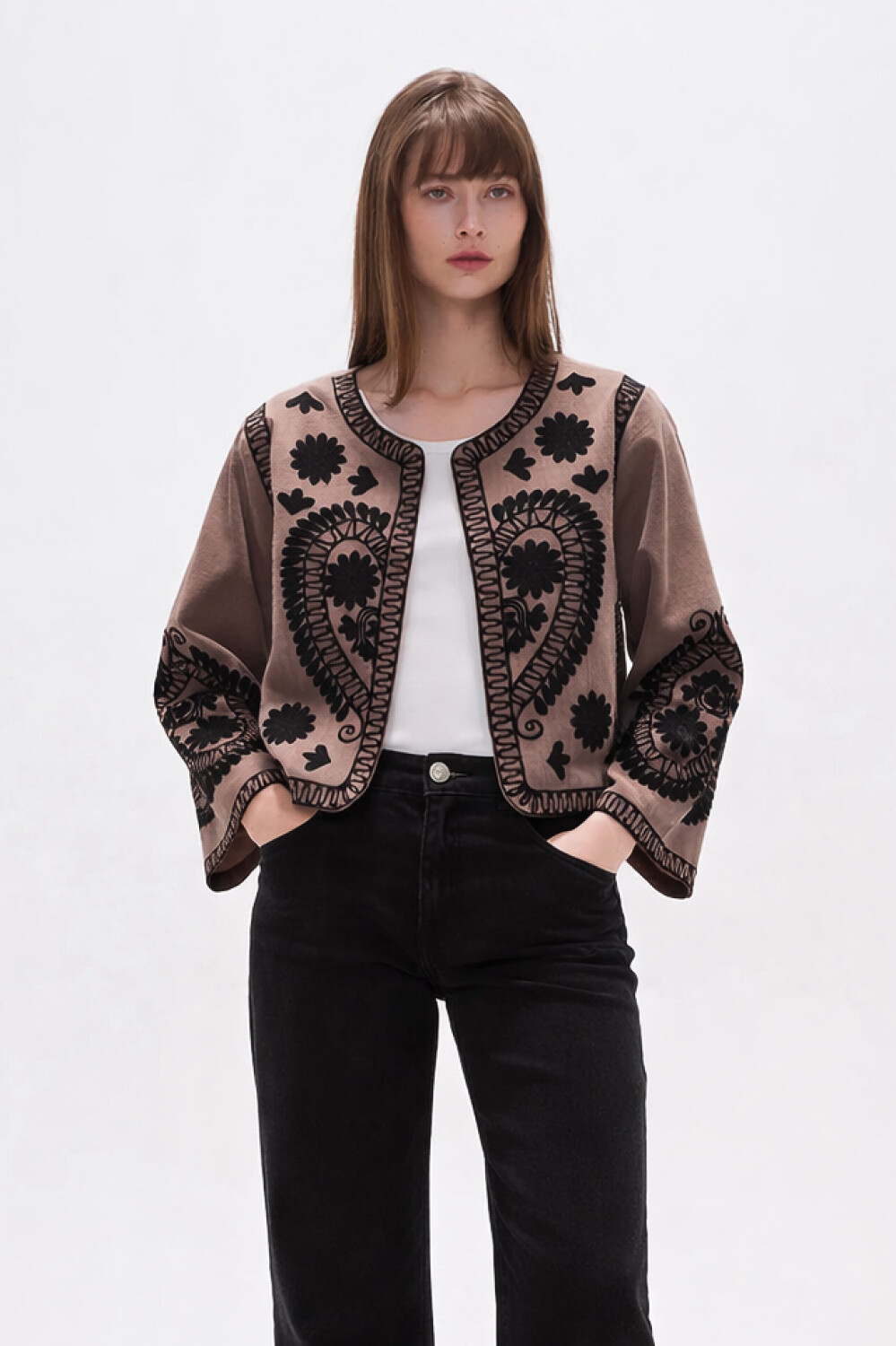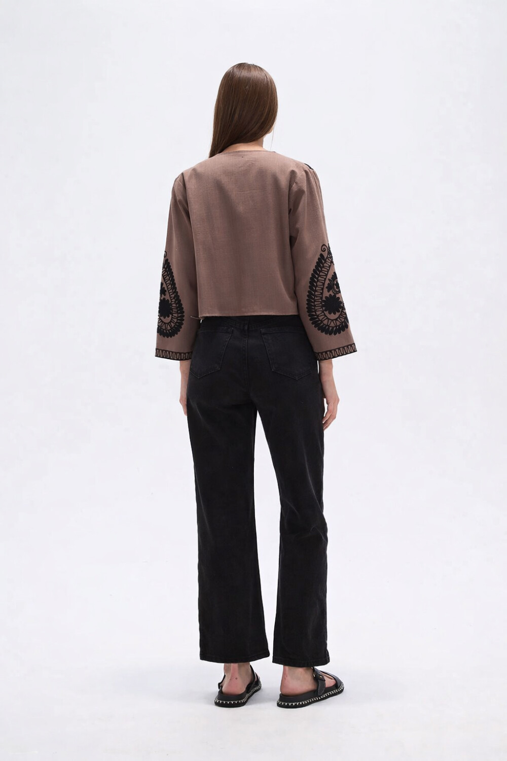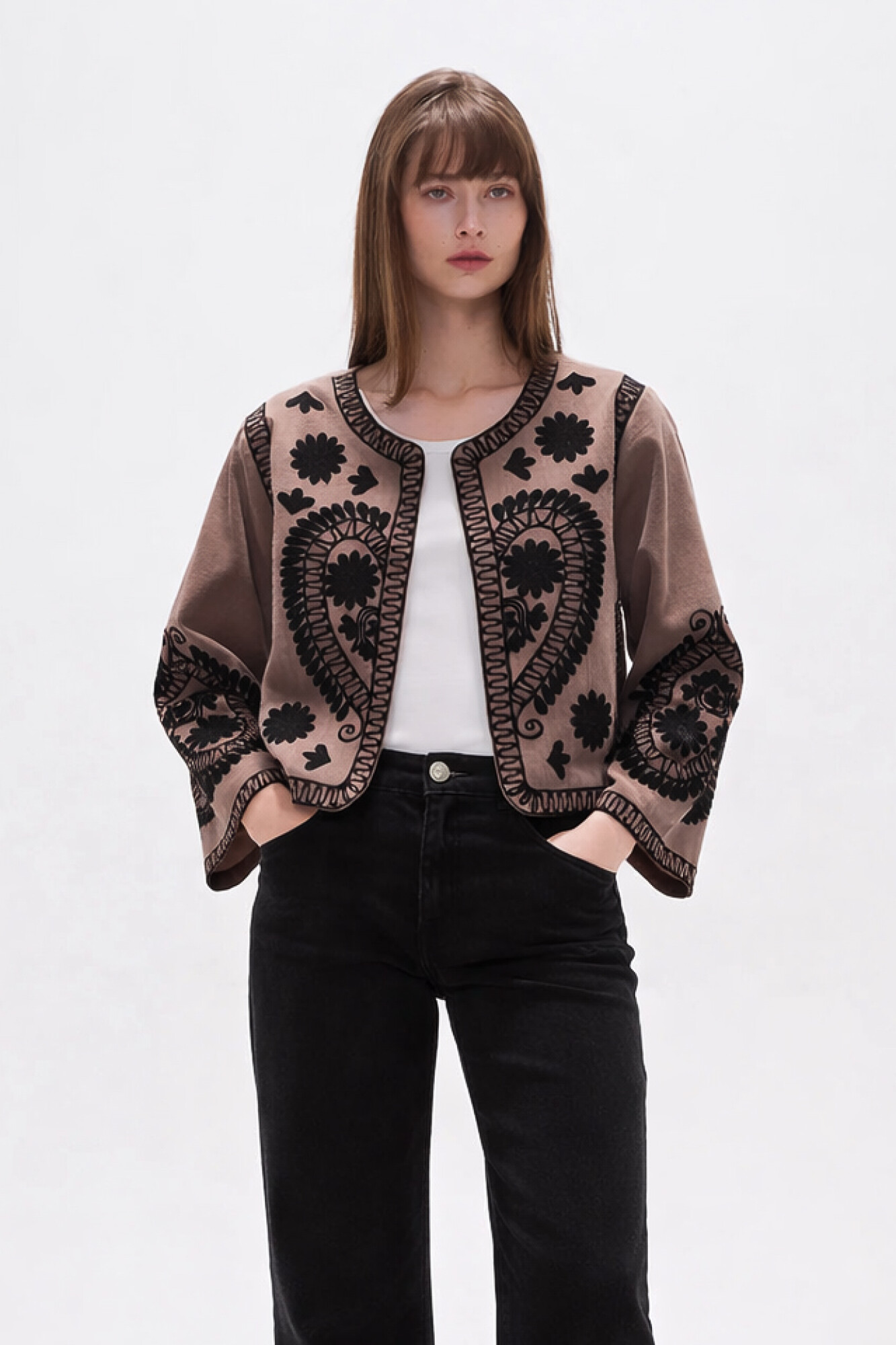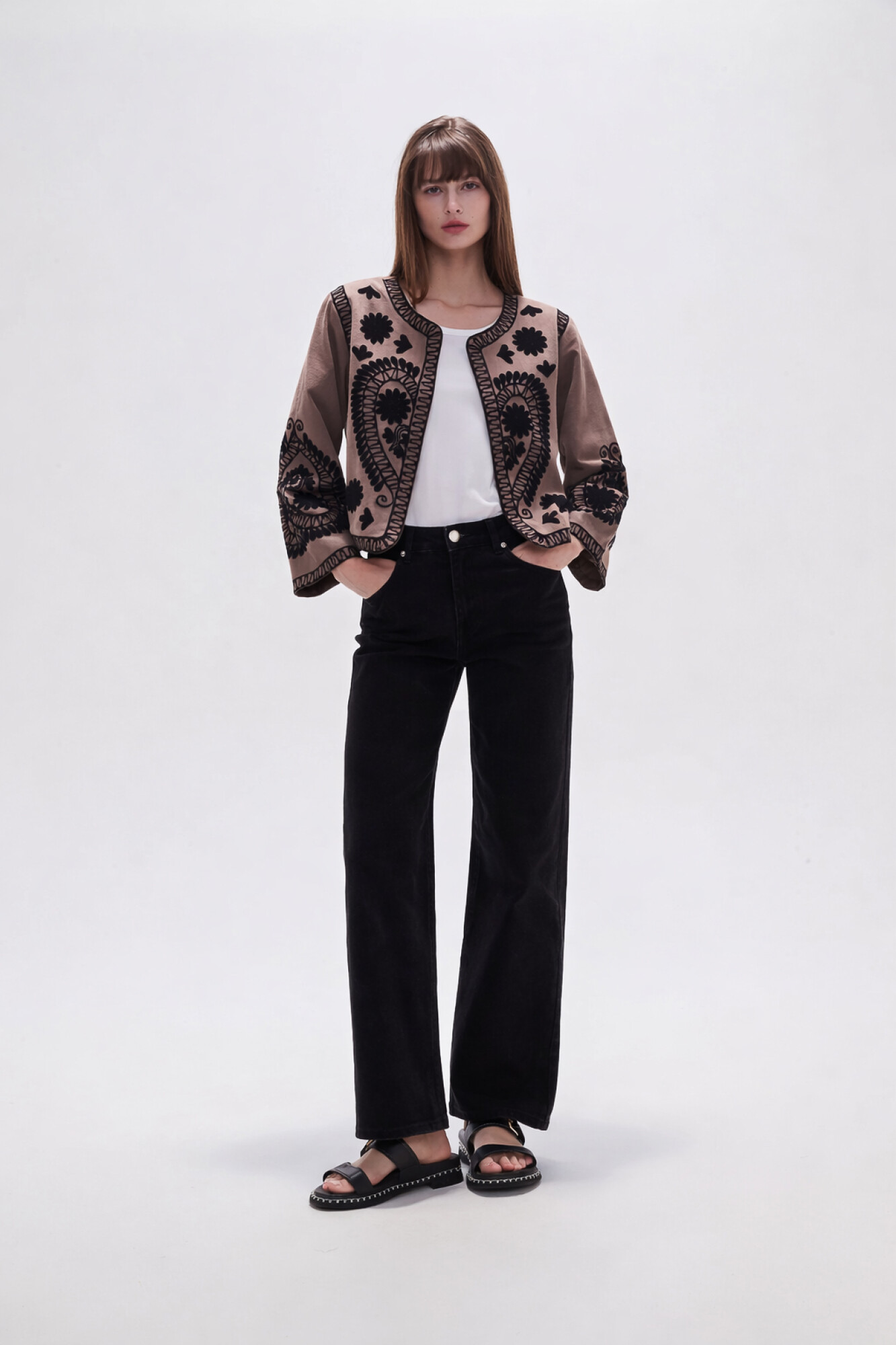 $ 815 Nuevos Chaqueta algodon, bordado, holgado, con broches y cuello redondo