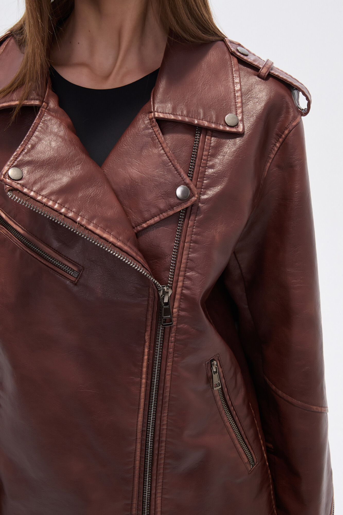 $ 2.175 Nuevos Chaqueta eco-cuero, wash, bolsillos, holgado, con cierre y cuello solapa