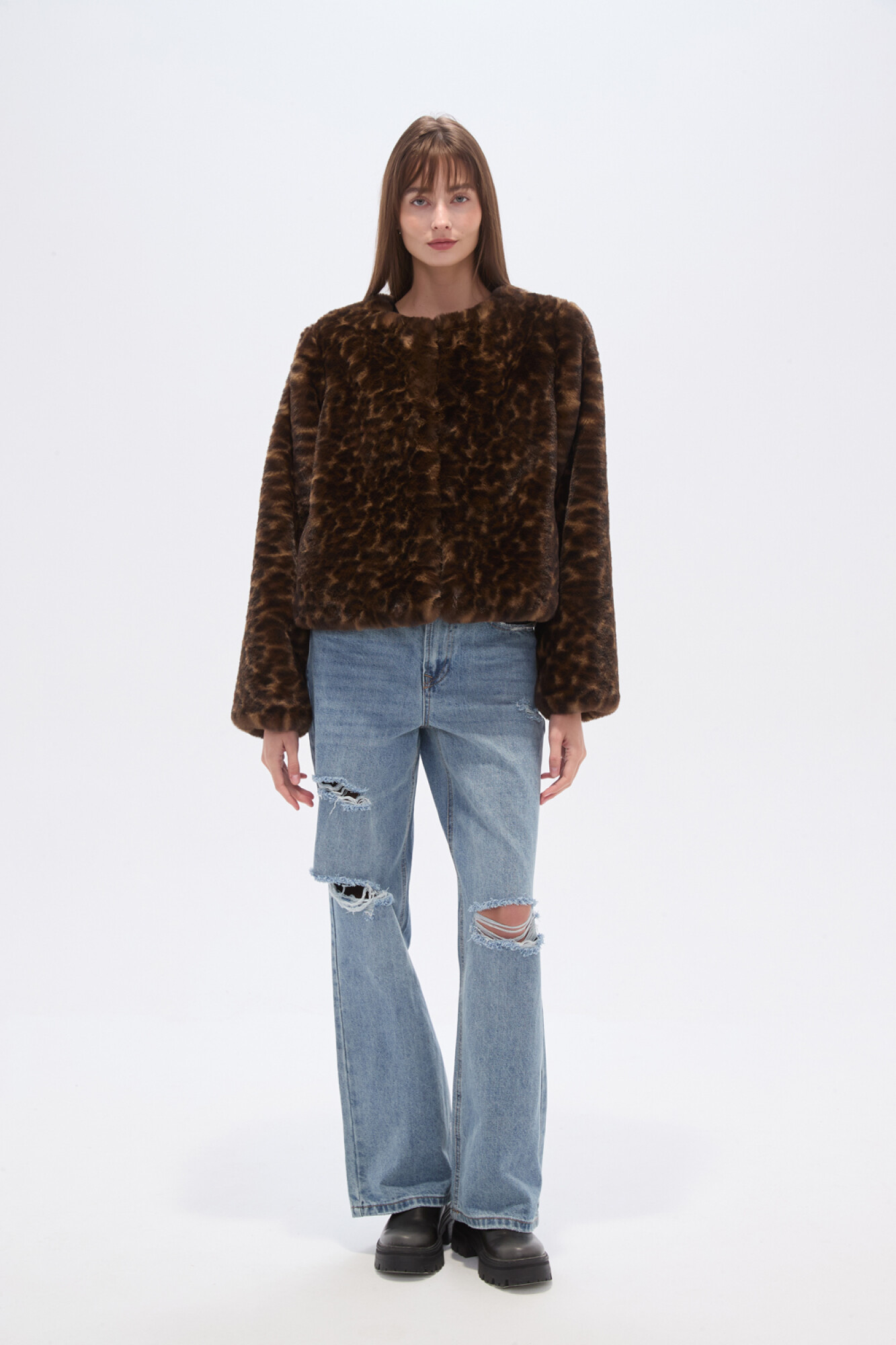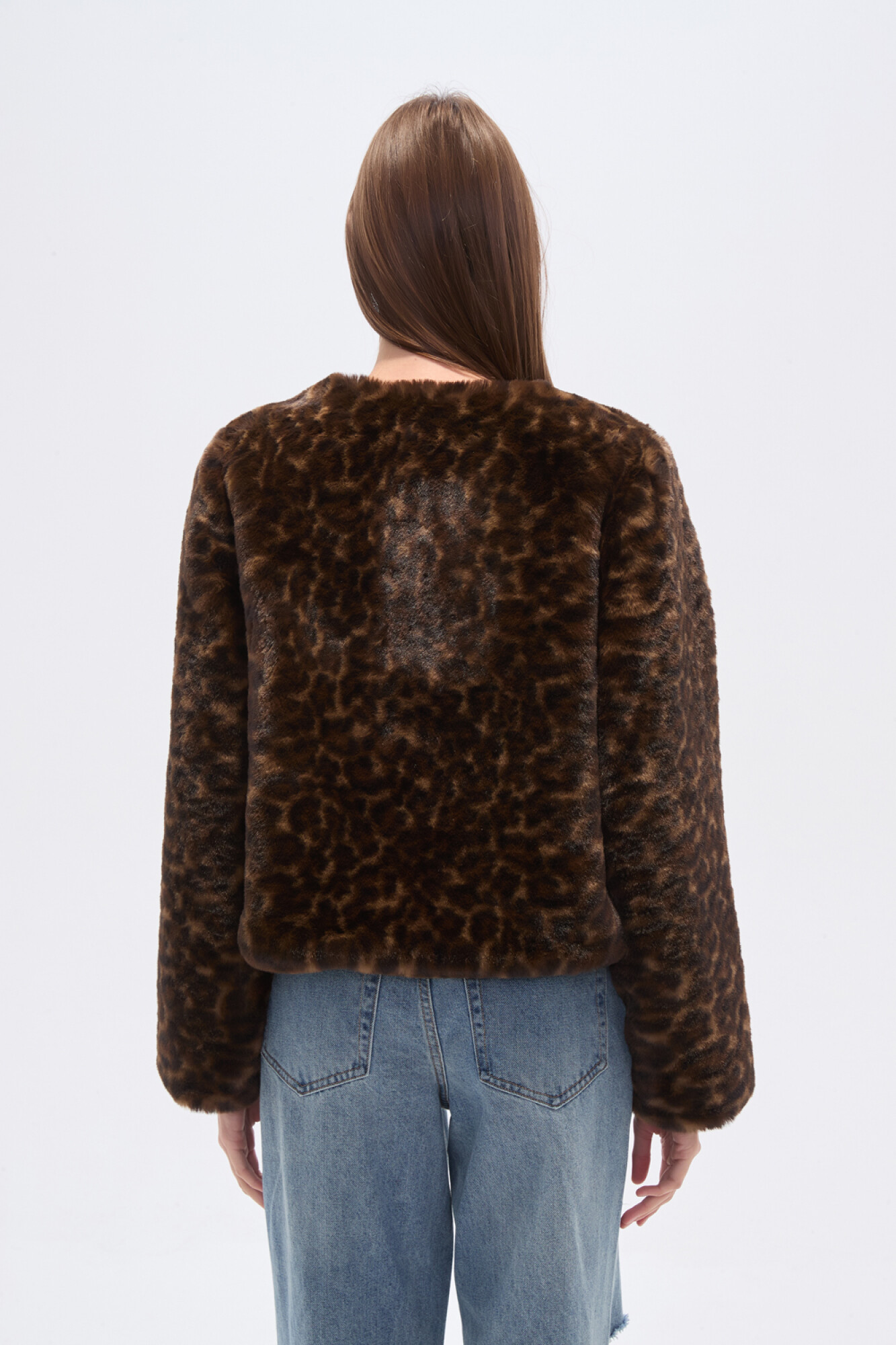 Nuevos Chaqueta poliester, piel, holgado y cuello a la base