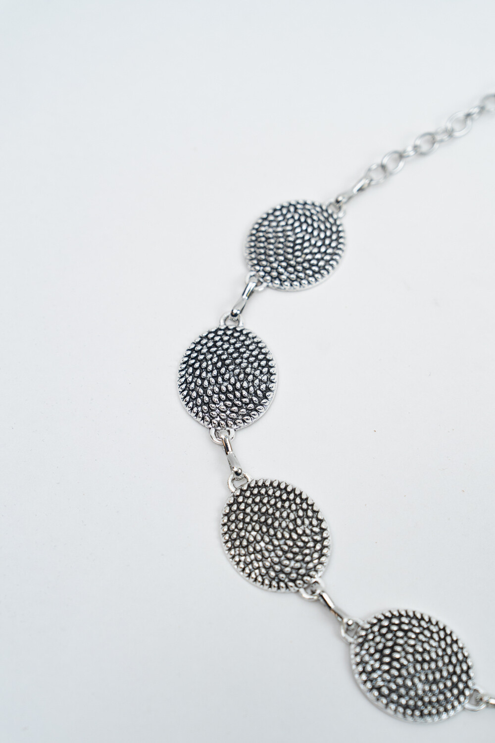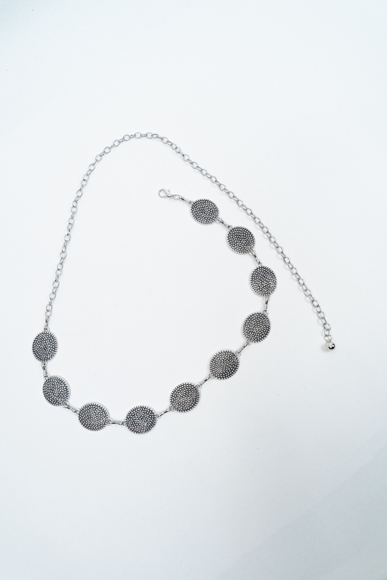 $ 237 Nuevos Recibilo en Cinturón de cadena en color plateado. Medidas: 120cm