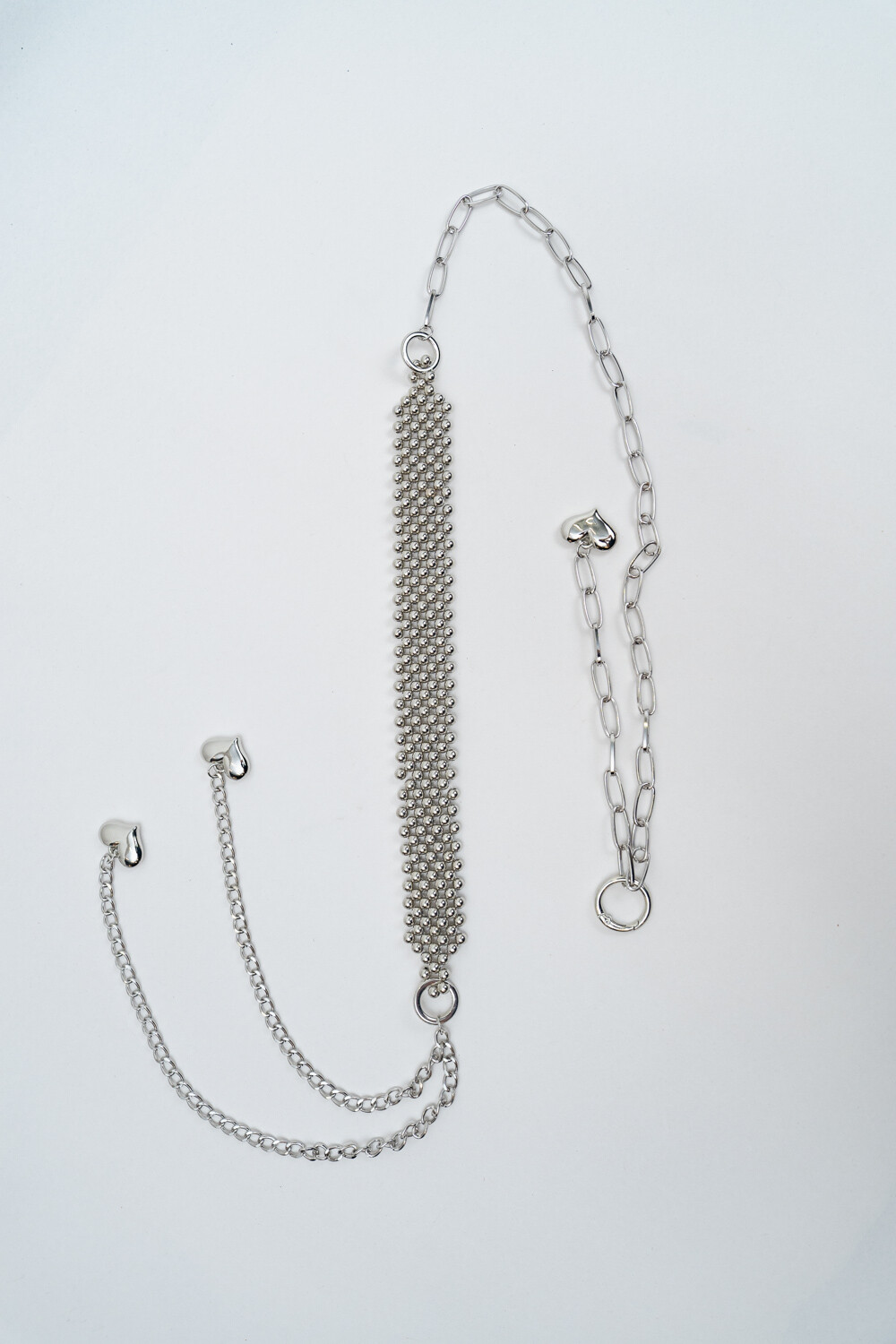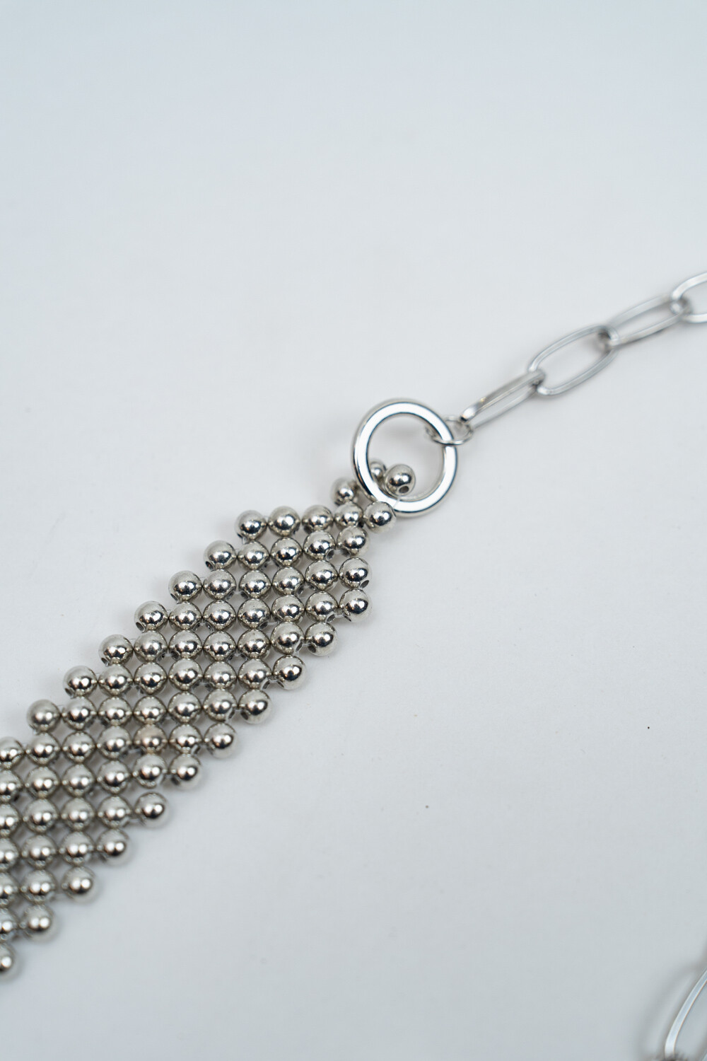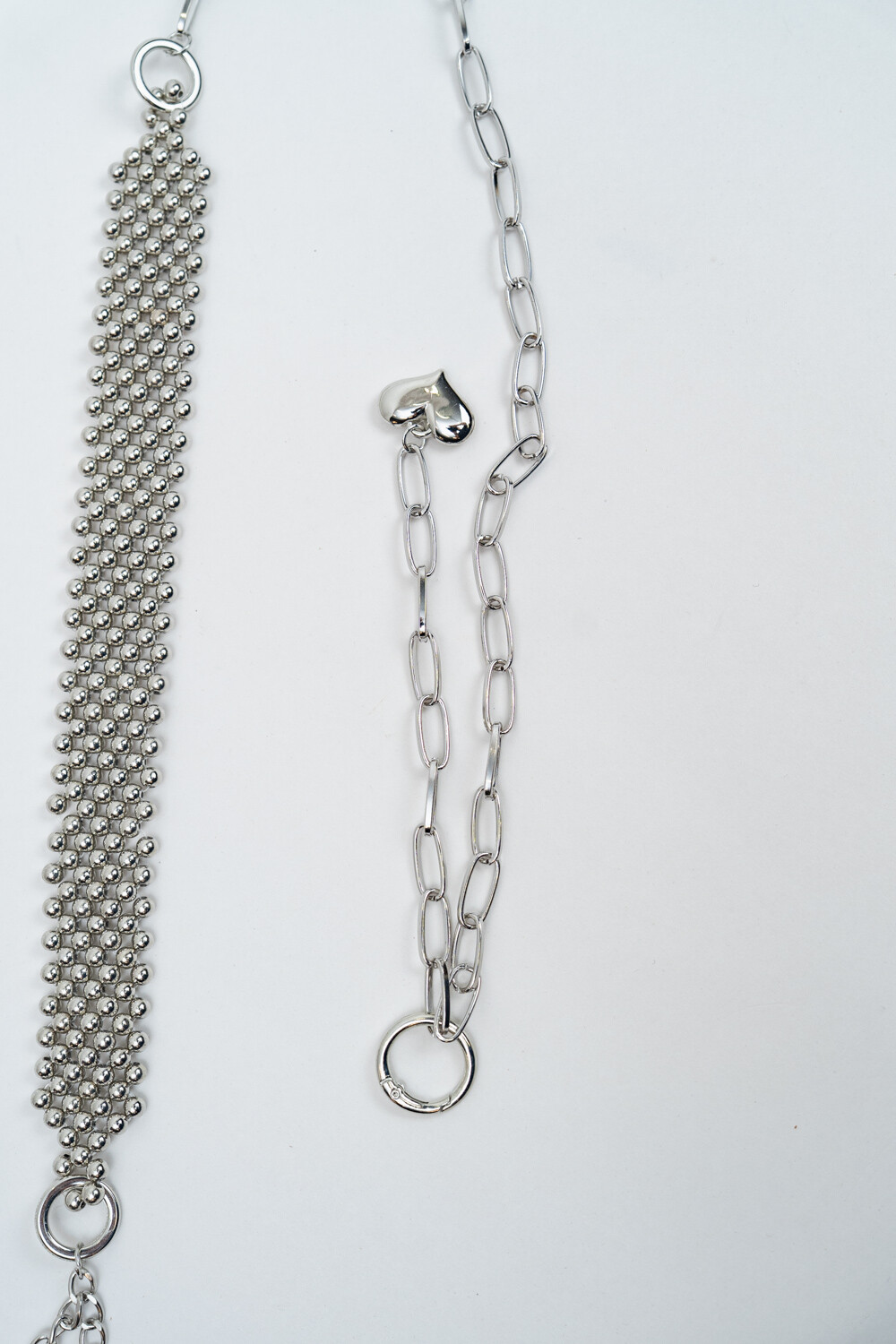 $ 237 Nuevos Recibilo en Cinturón cadena en color plateado. Medida: 120cm