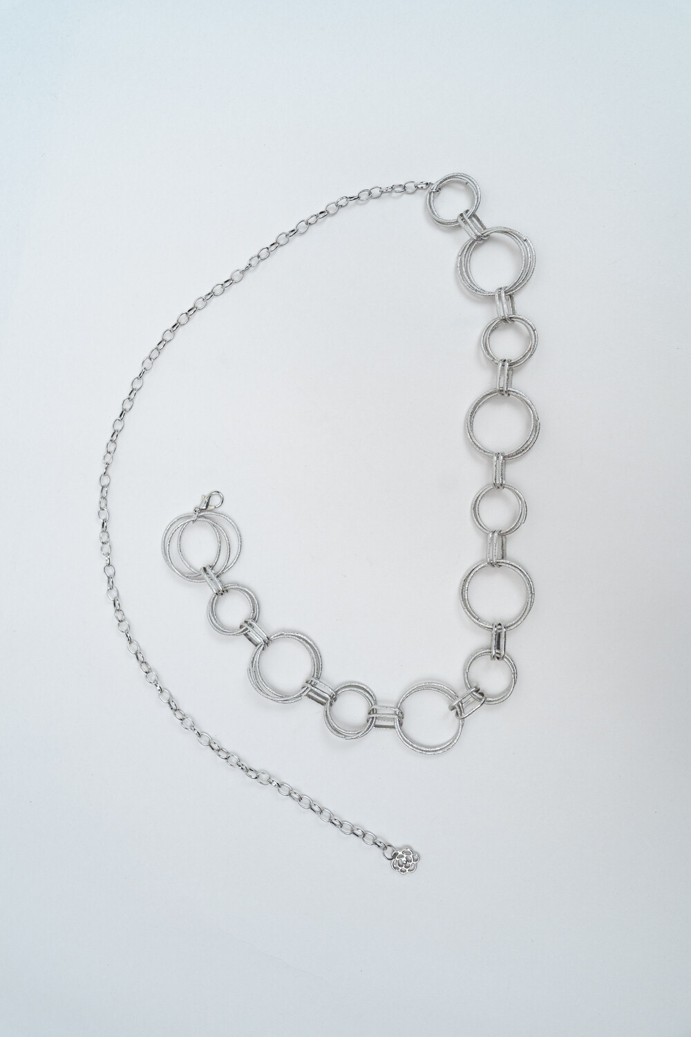 $ 237 Nuevos Recibilo en Cinturón cadena color plateado. Medida: 120cm