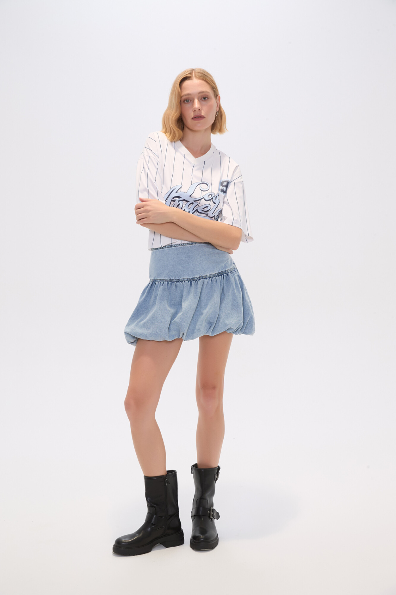 Nuevos Recibilo en  Falda mini de jean y frunces