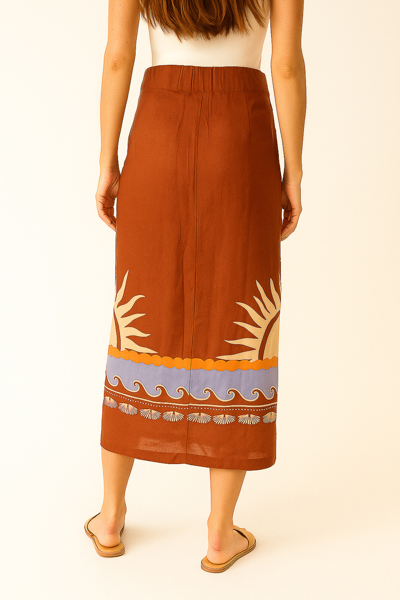 $ 543 Nuevos Recibilo en Falda largo de lino + viscosa y estampado