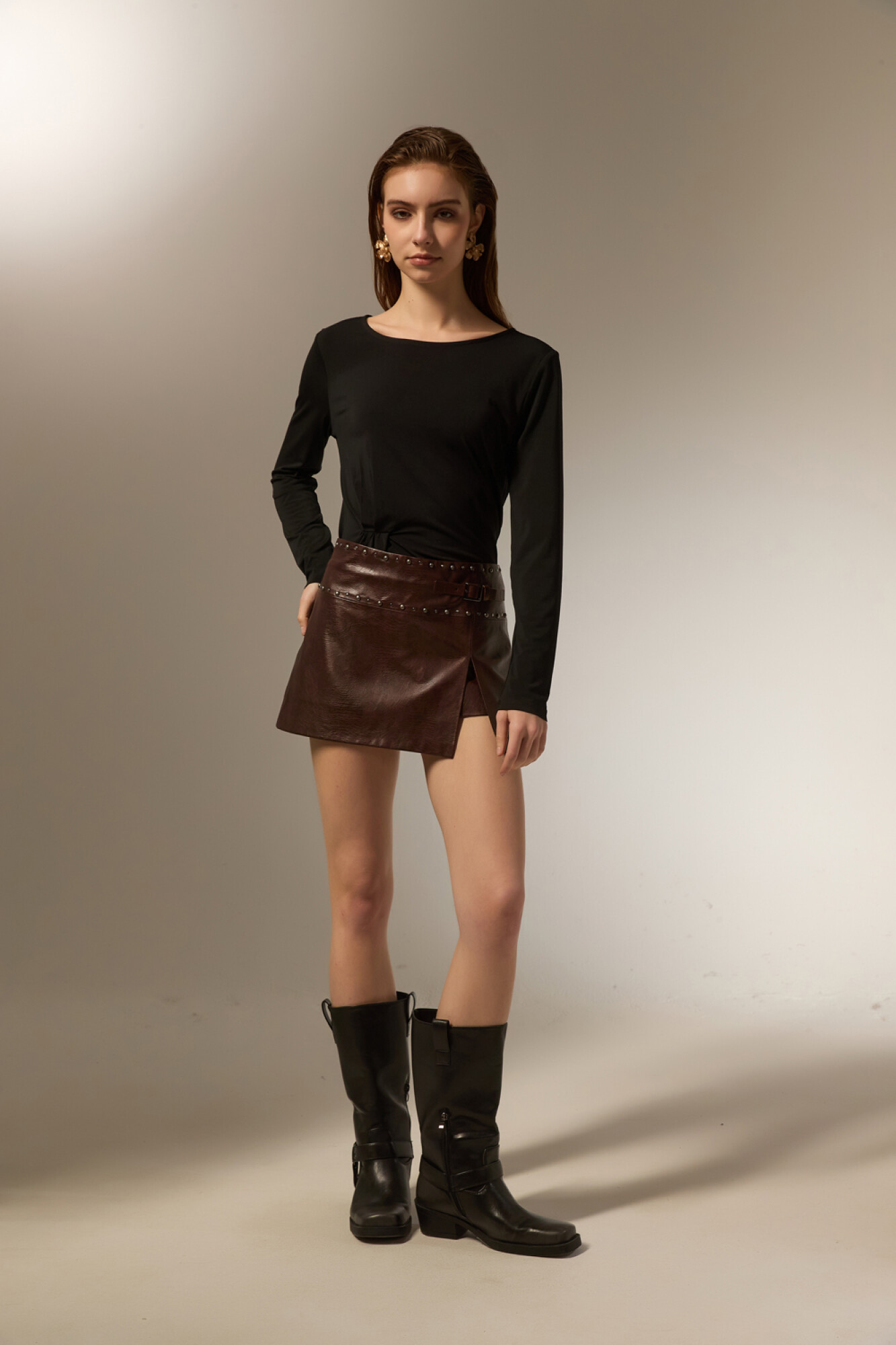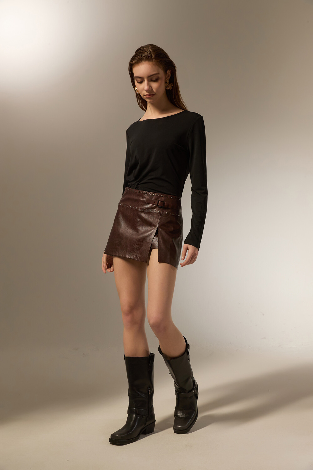 Nuevos Recibilo en Falda mini de eco-cuero y tajo