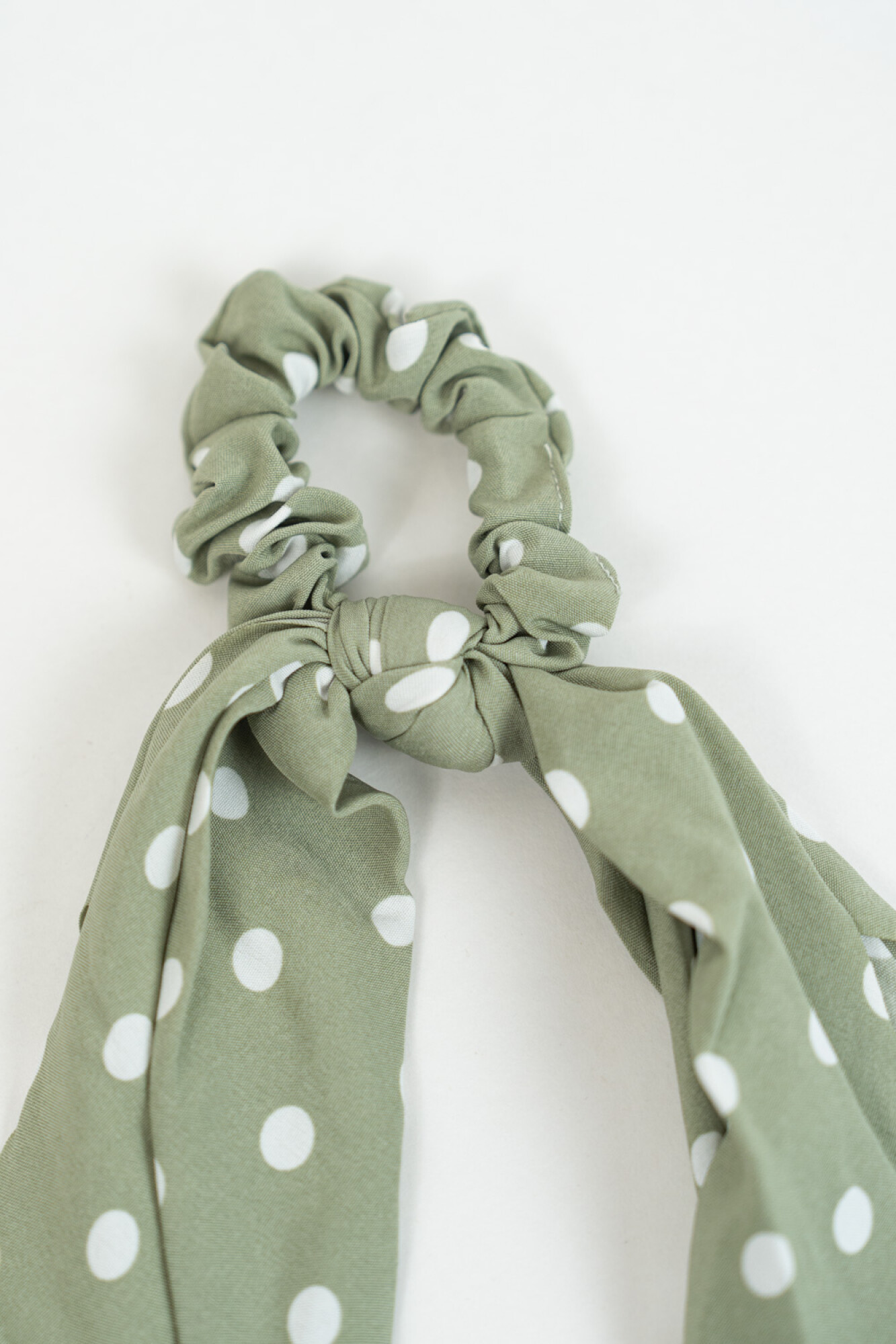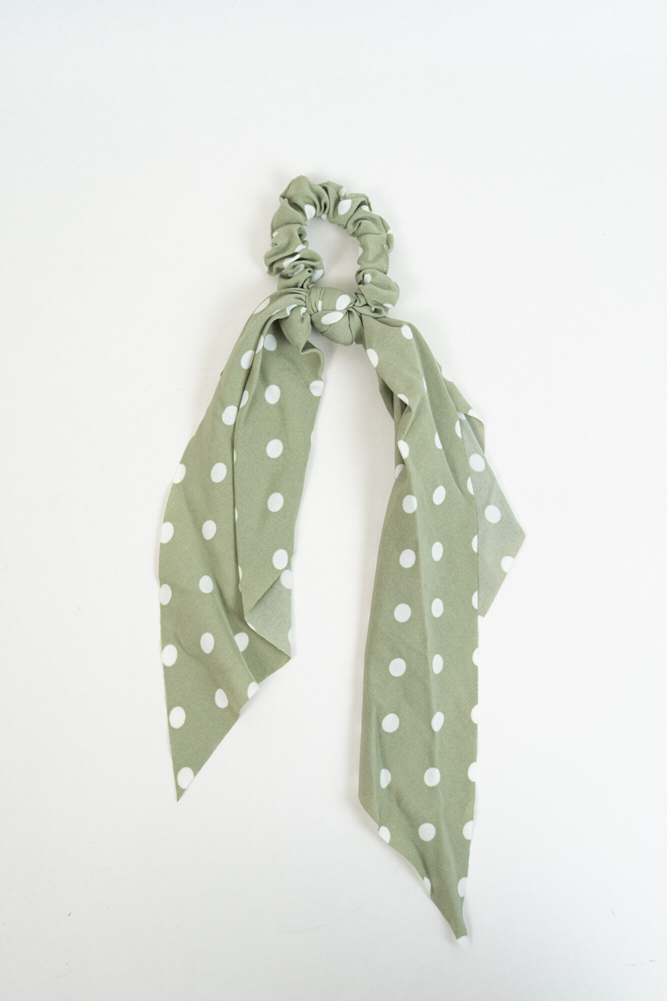 $ 128 Nuevos Recibilo en Gomita de pelo con cintas. Color: Caqui. Medidas 34cm