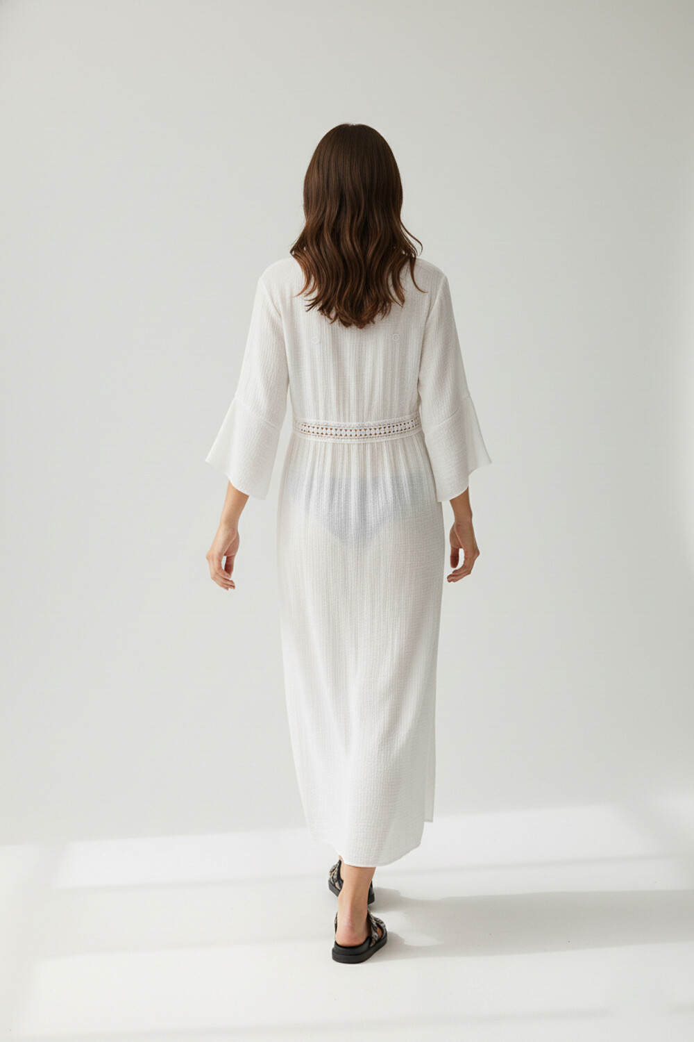 $ 424 Sale Kimono manga 3/4, apliques, holgado, con lace y cuello profundo
