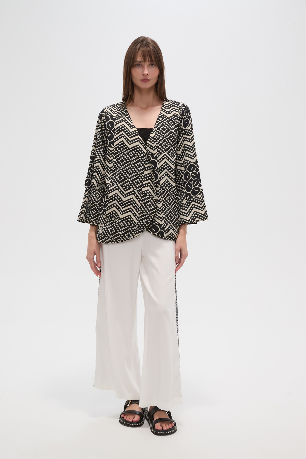 Sale Kimono manga 3/4 de poliester, aop, estampado, holgado y cuello en v