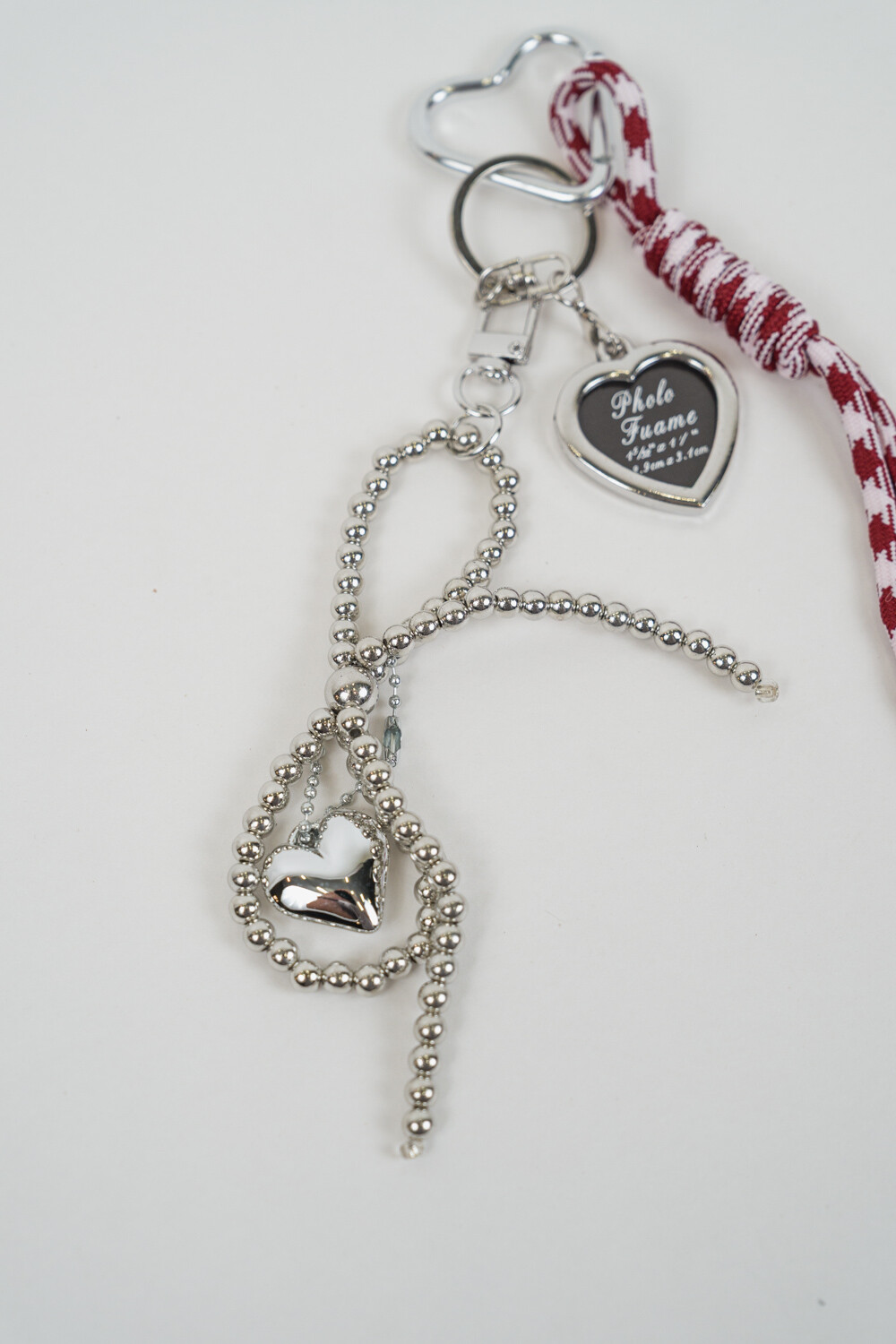 $ 190 Nuevos Recibilo en LLAVERO CON MOÑO EN PERLAS PLATEADAS Y CORAZÓN NEGRO