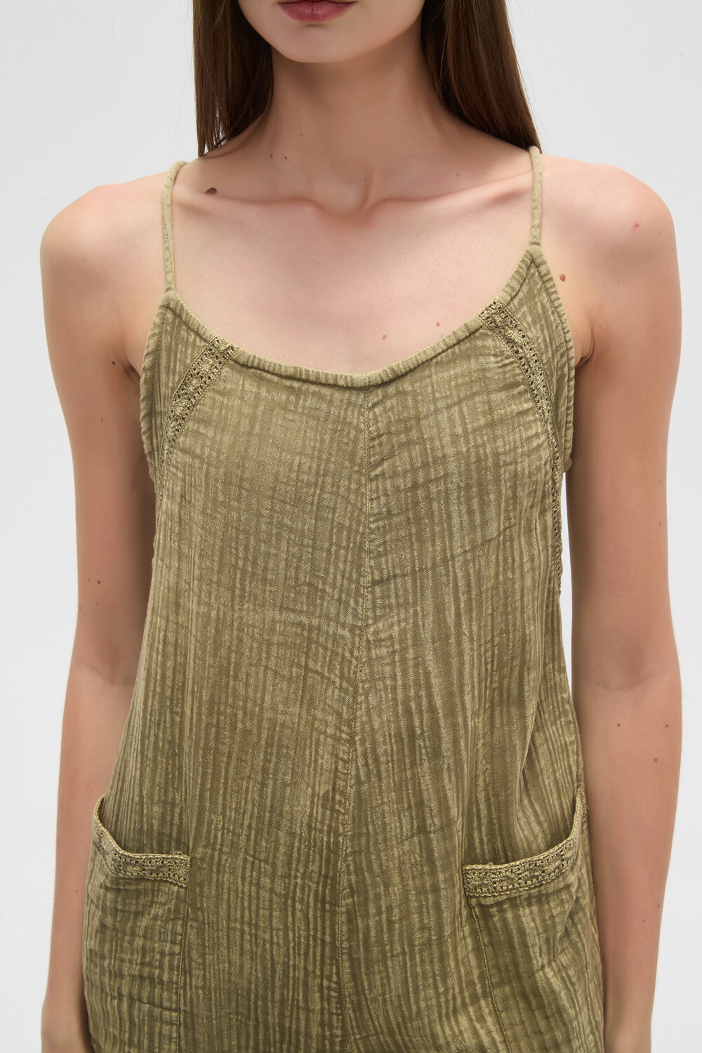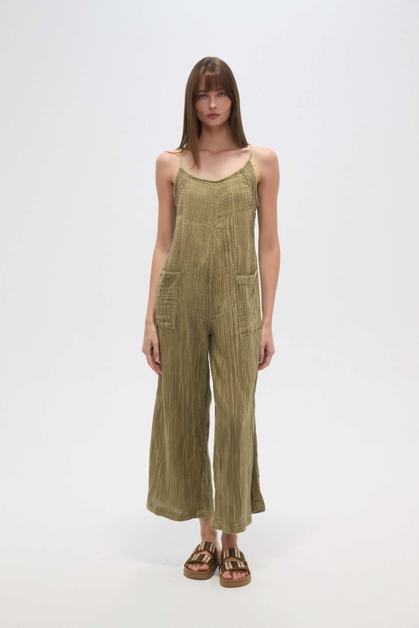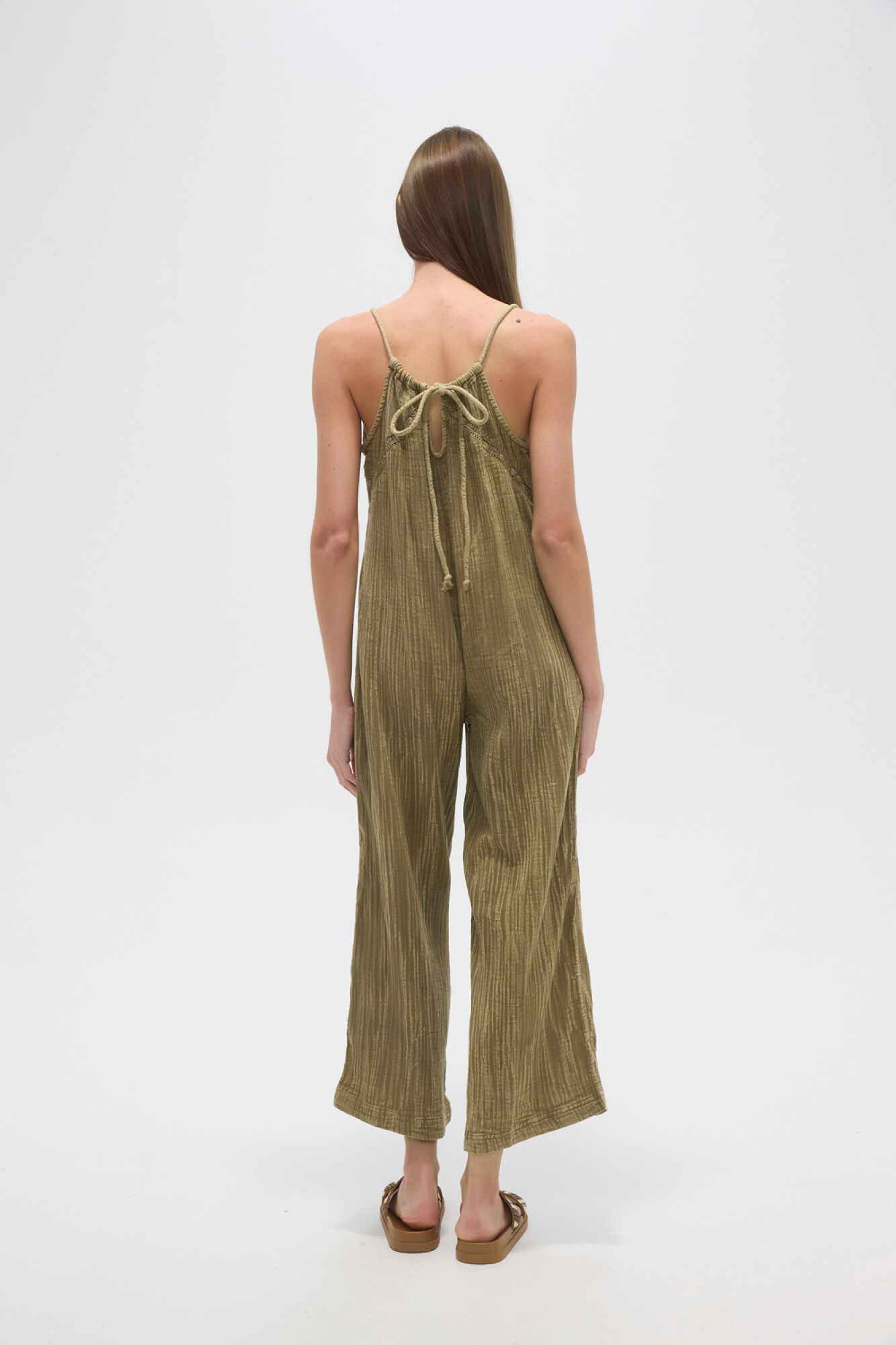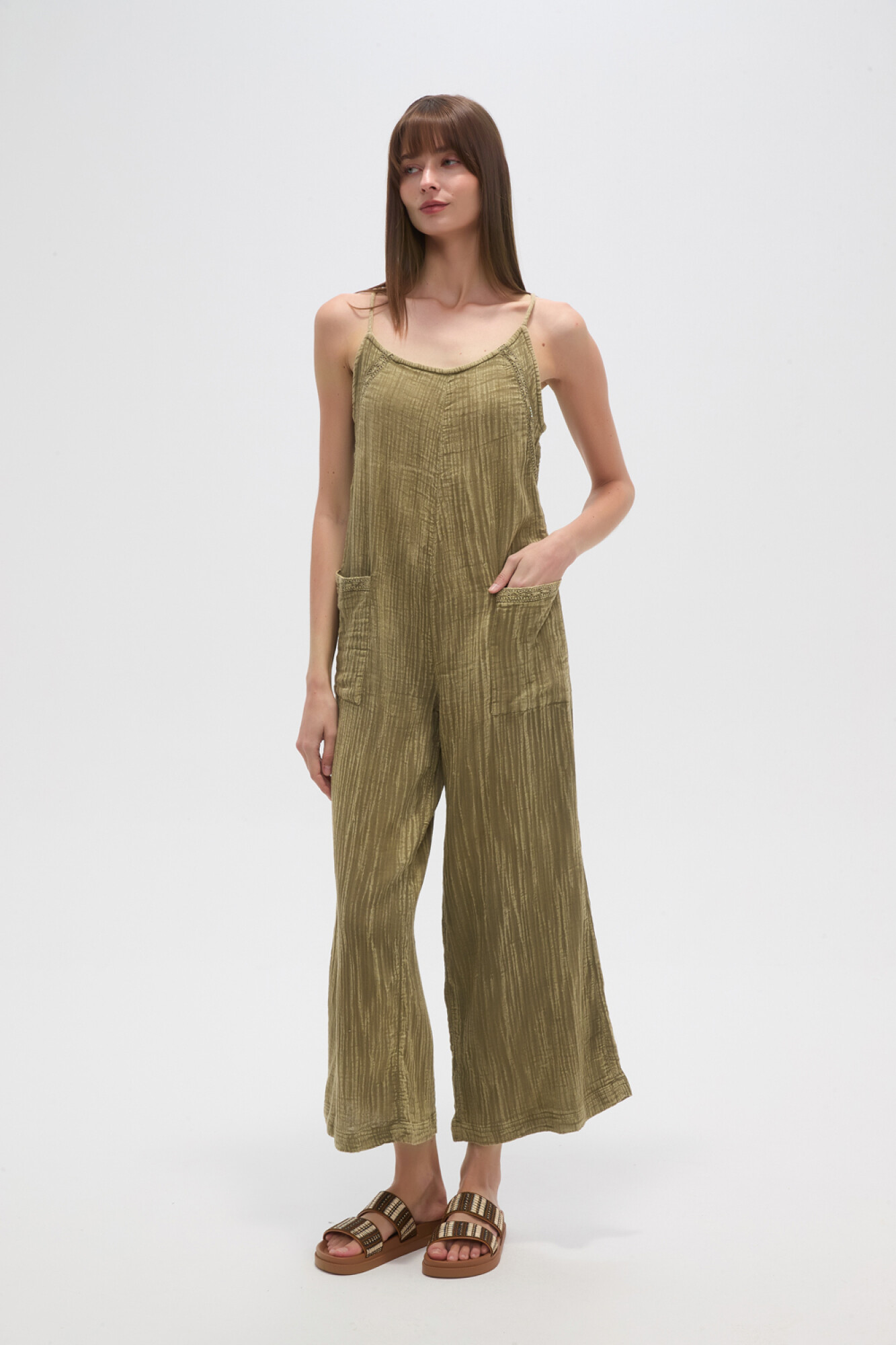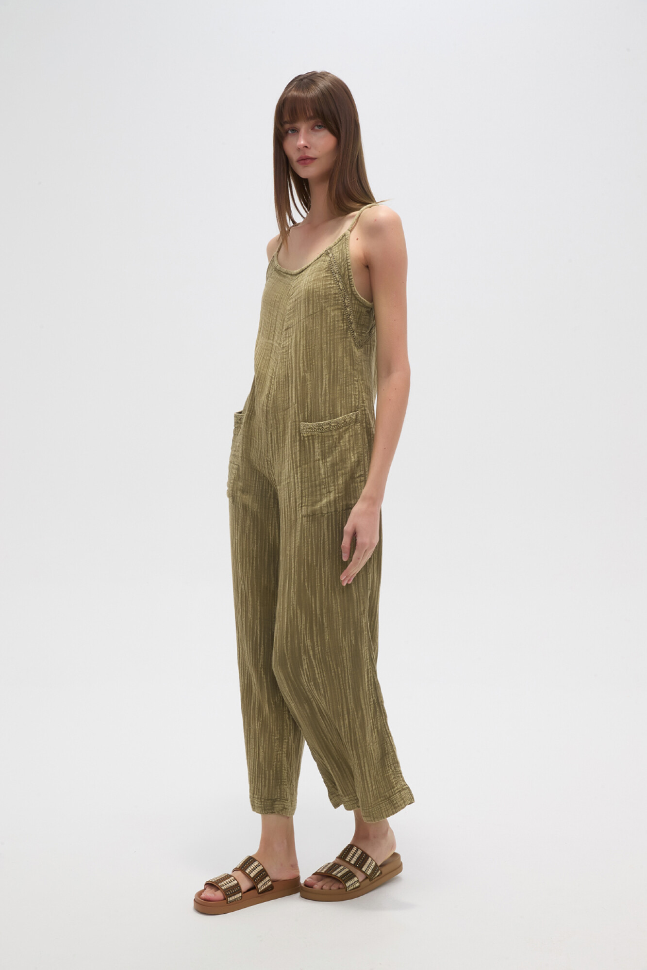 Nuevos Recibilo en Mono bretel lencero de algodon, bolsillos, holgado, con cordon y cuello en v