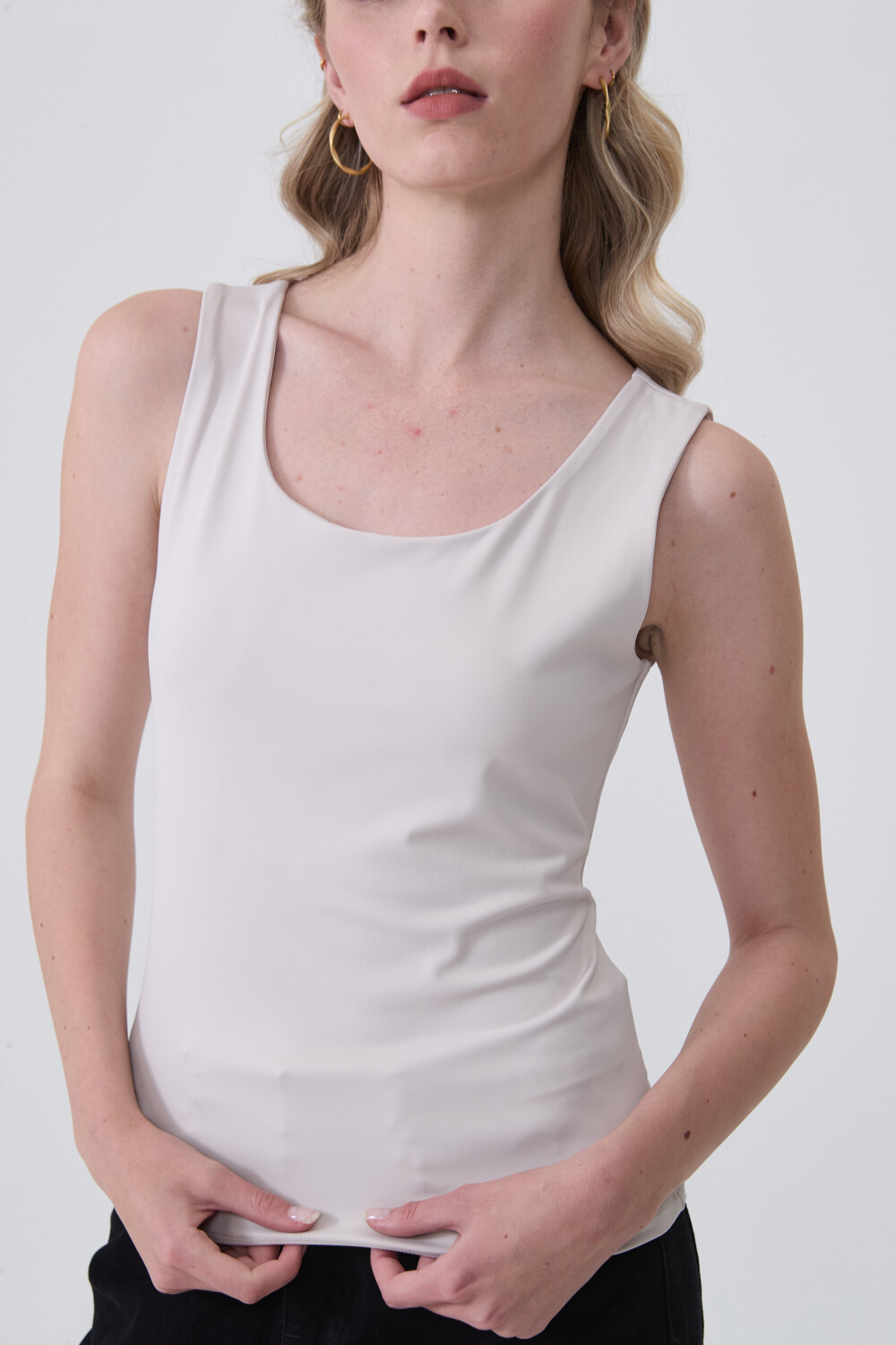$ 475 Nuevos Musculosa sin mangas de poliamida, al cuerpo y cuello redondo