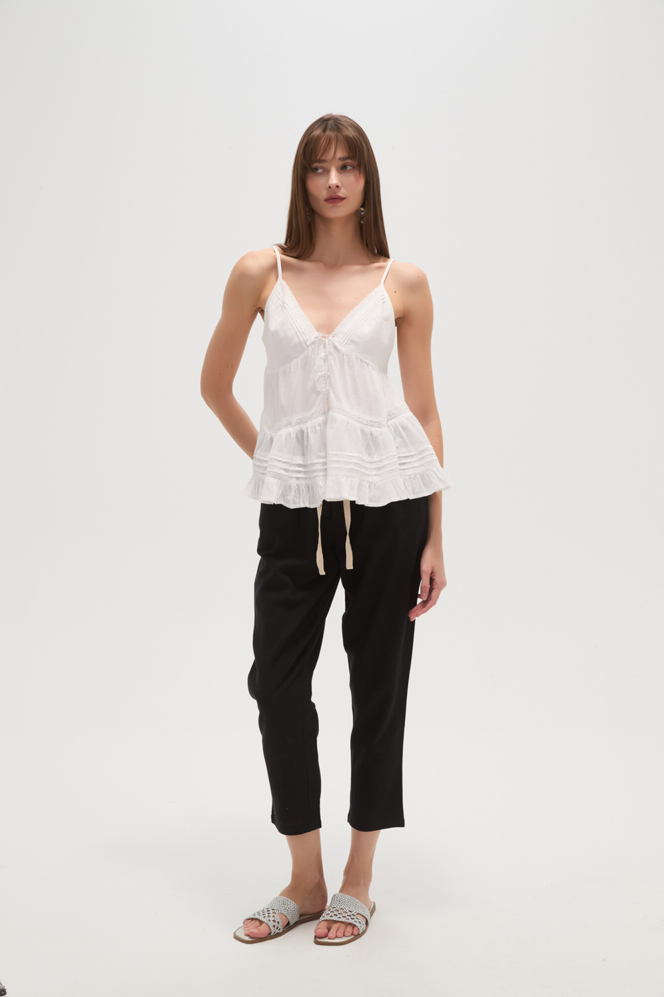 $ 815 Nuevos Musculosa bretel lencero de algodon, drapeado, volados, holgado, con botones, con lace y cuello profundo