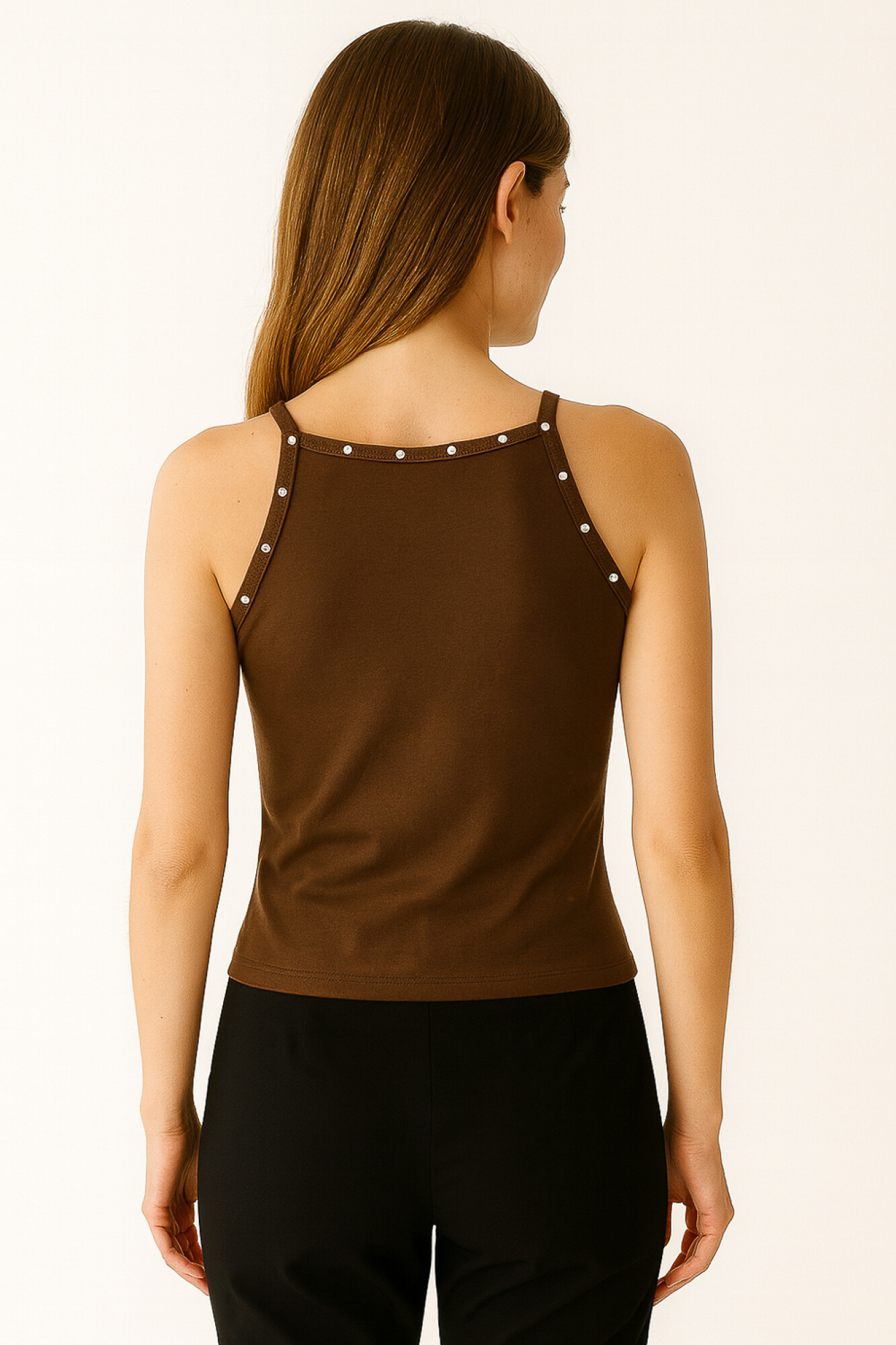 $ 224 Nuevos Recibilo en Musculosa sin mangas de algodon, chest print, estampado, al cuerpo, con tachas y cuello redondo
