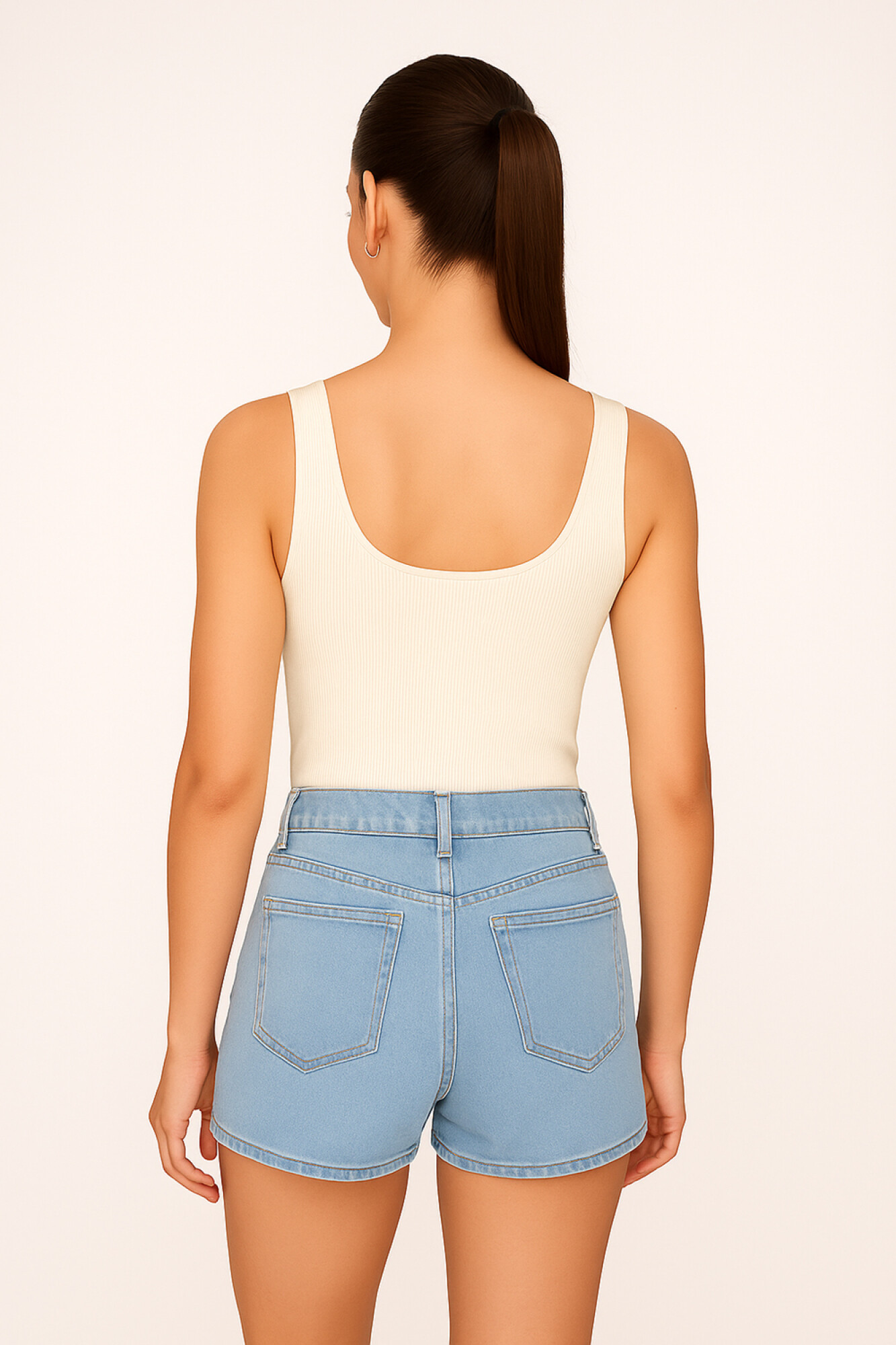 $ 393 Nuevos Musculosa viscosa, canalé, al cuerpo y cuello redondo