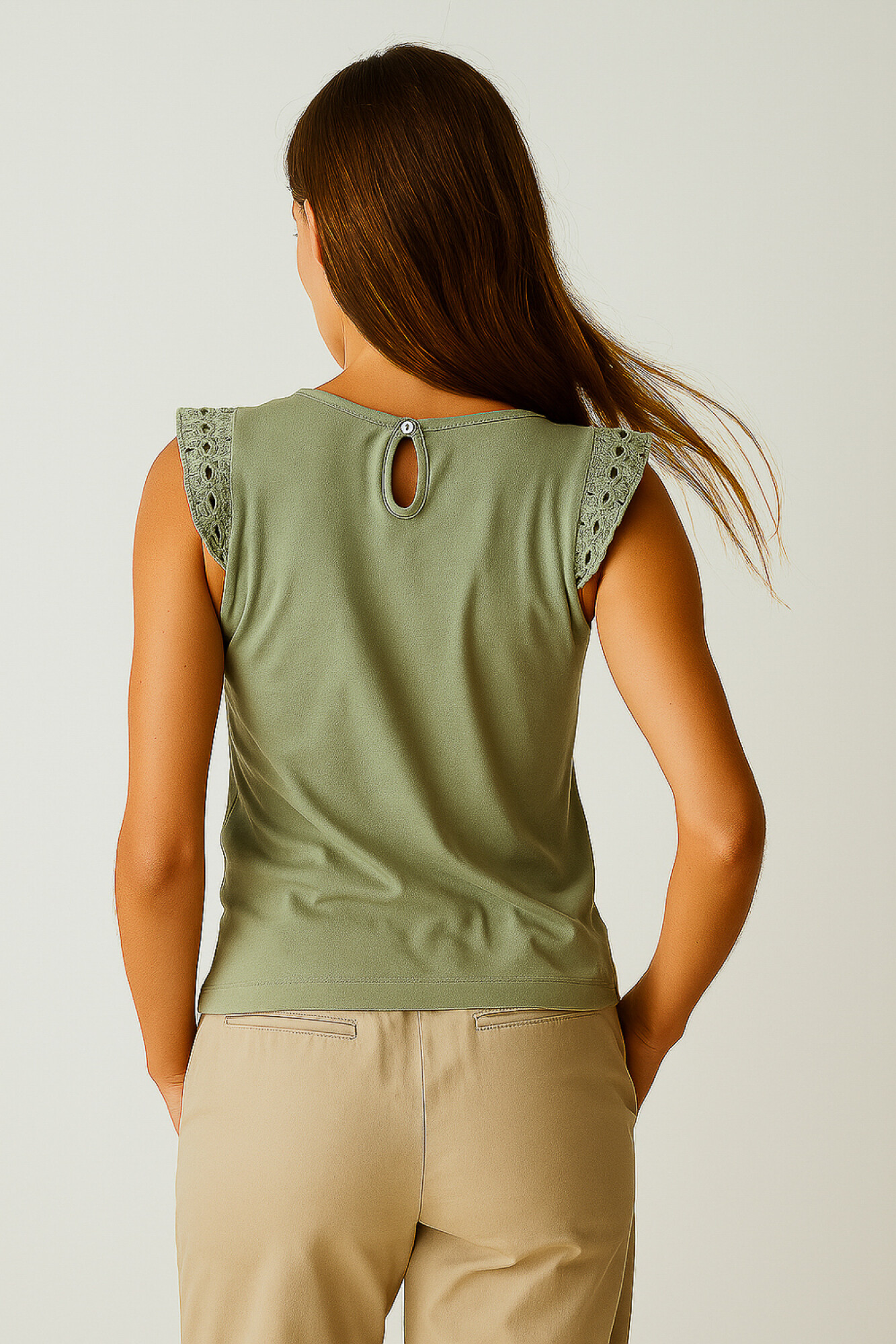 $ 543 Nuevos Recibilo en Musculosa modal, broderie, volados, holgado, con boton y cuello a la base
