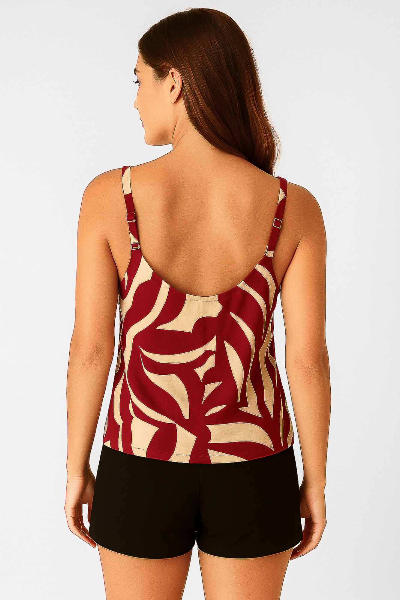 $ 679 Nuevos Recibilo en Musculosa bretel fino de viscosa, estampado, al cuerpo, con aro, con cuentas y cuello en v