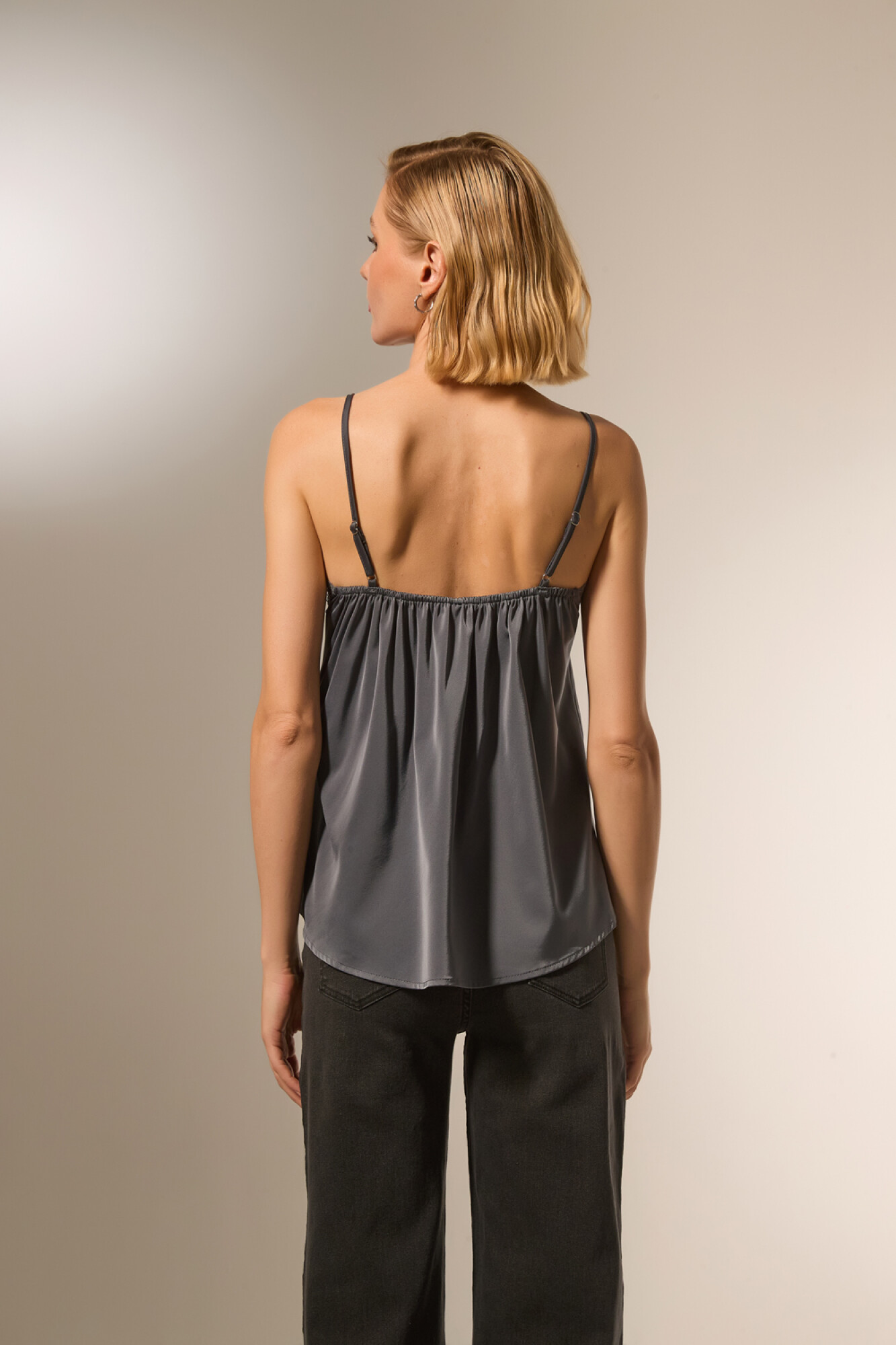 $ 573 Nuevos Musculosa bretel fino de rayon, holgado, con lace, con reguladores y cuello en v