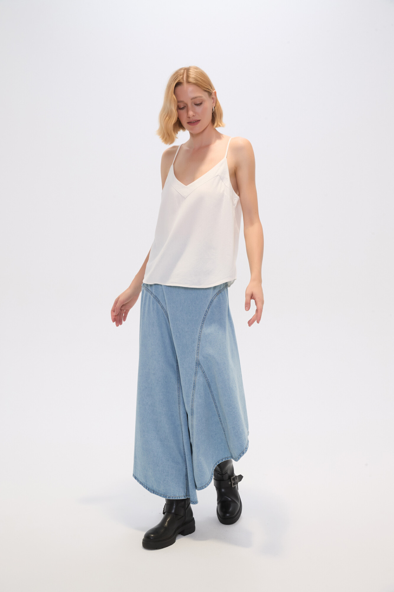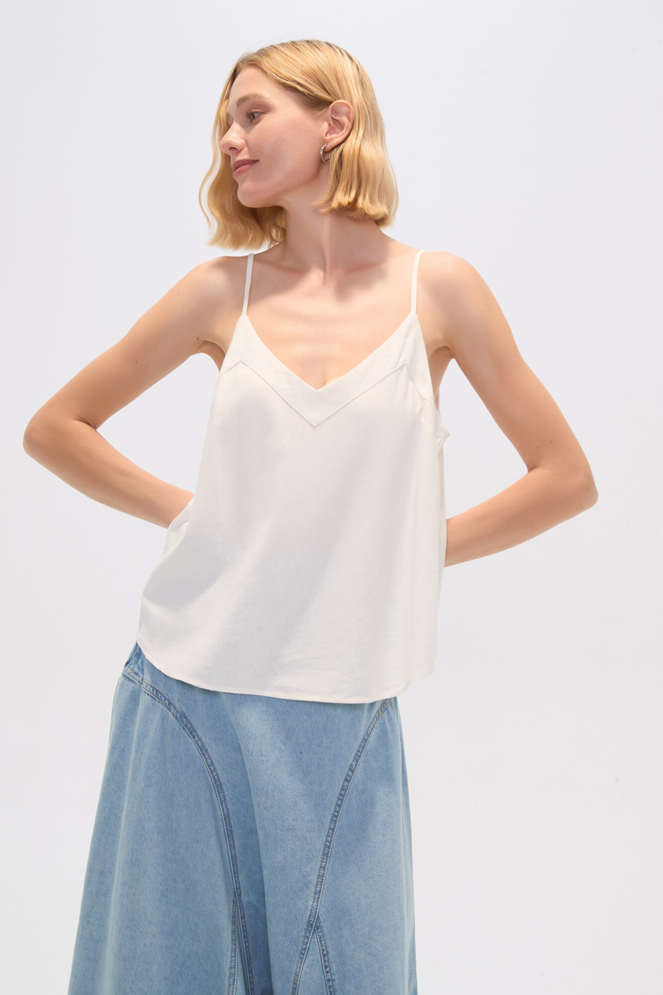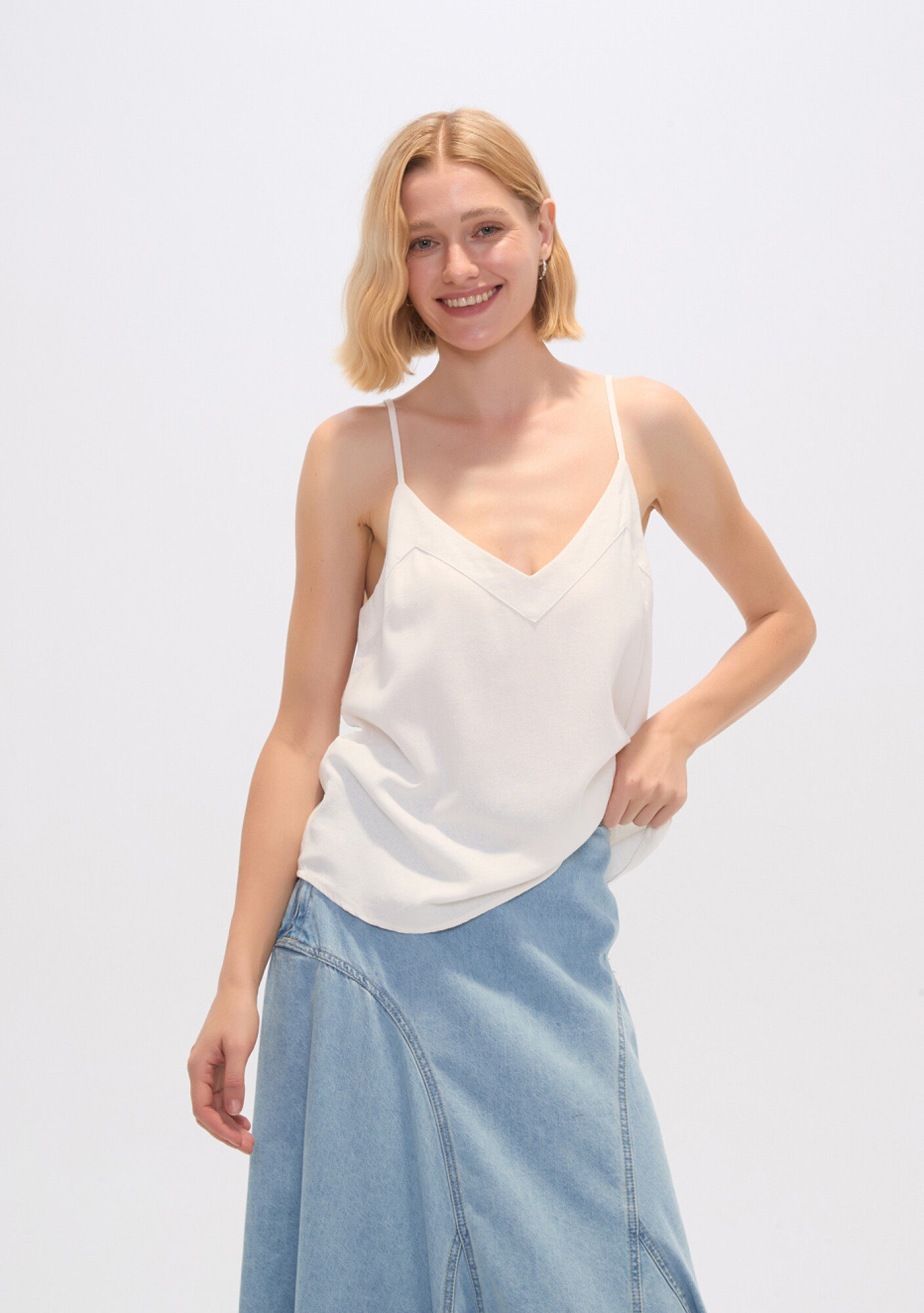 Nuevos Recibilo en Musculosa bretel fino de viscosa, al cuerpo y cuello en v