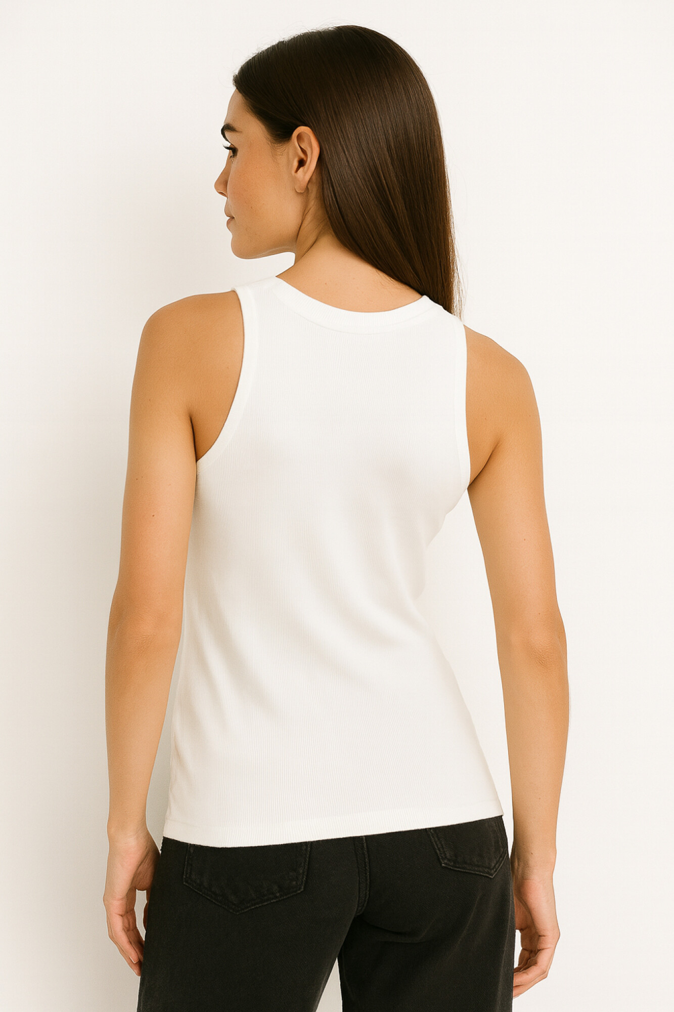 $ 339 Nuevos Musculosa algodon + elastano, canalé, entallado y cuello en v
