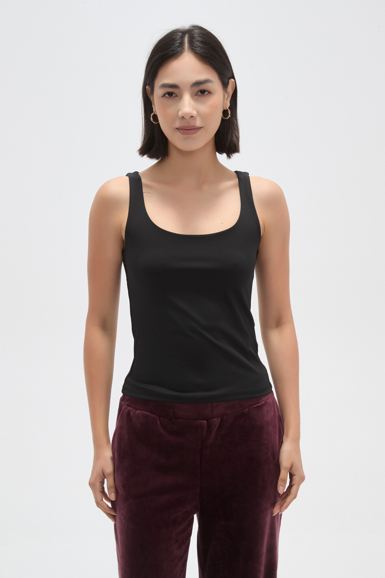 $ 475 Nuevos Recibilo en Musculosa sin mangas de poliamida, al cuerpo y cuello cuadrado