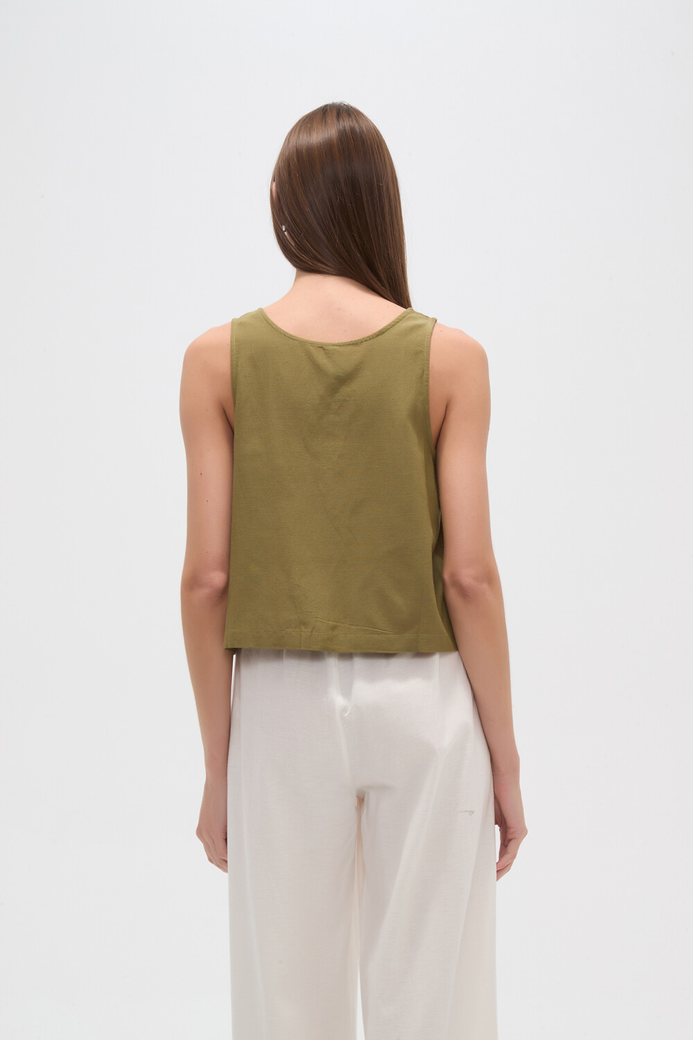 $ 594 Sale Musculosa lino + viscosa, holgado, con botones y cuello en v