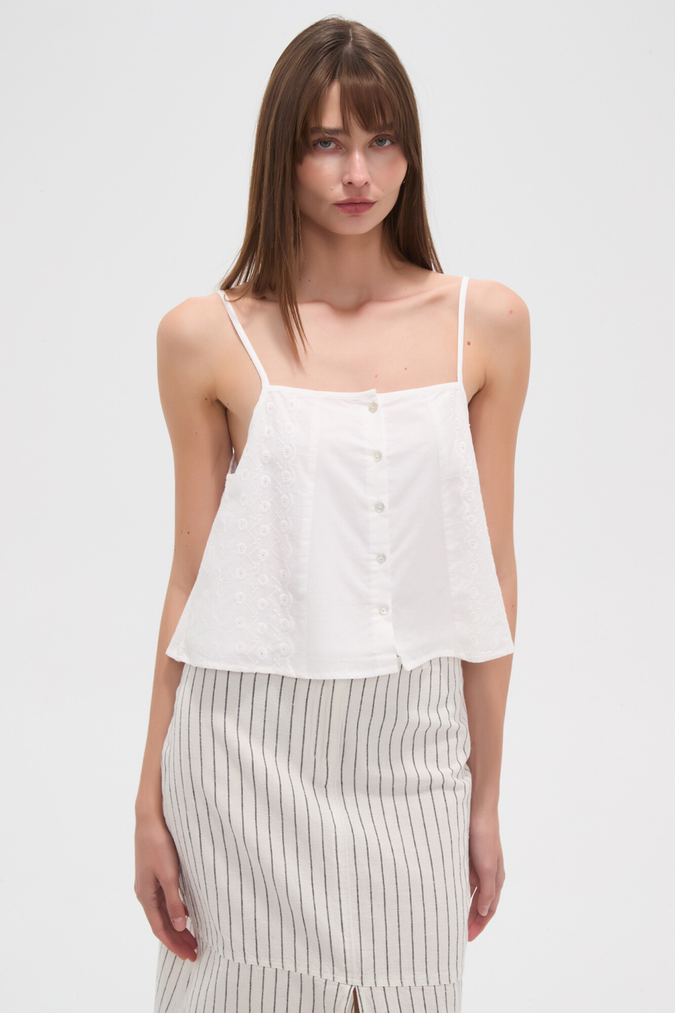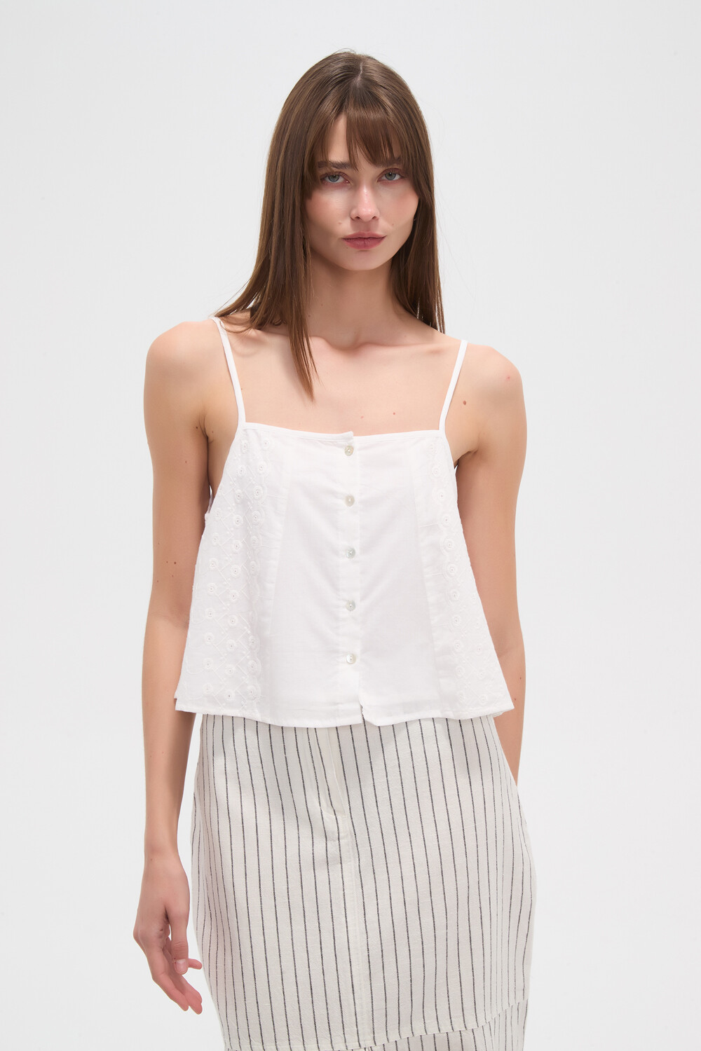 $ 509 Sale Musculosa bretel fino de algodon, broderie, holgado y con botones