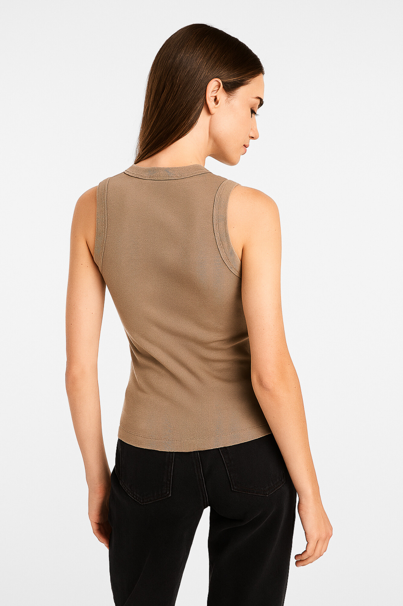 $ 339 Nuevos Recibilo en Musculosa sin mangas de algodon, al cuerpo y cuello a la base