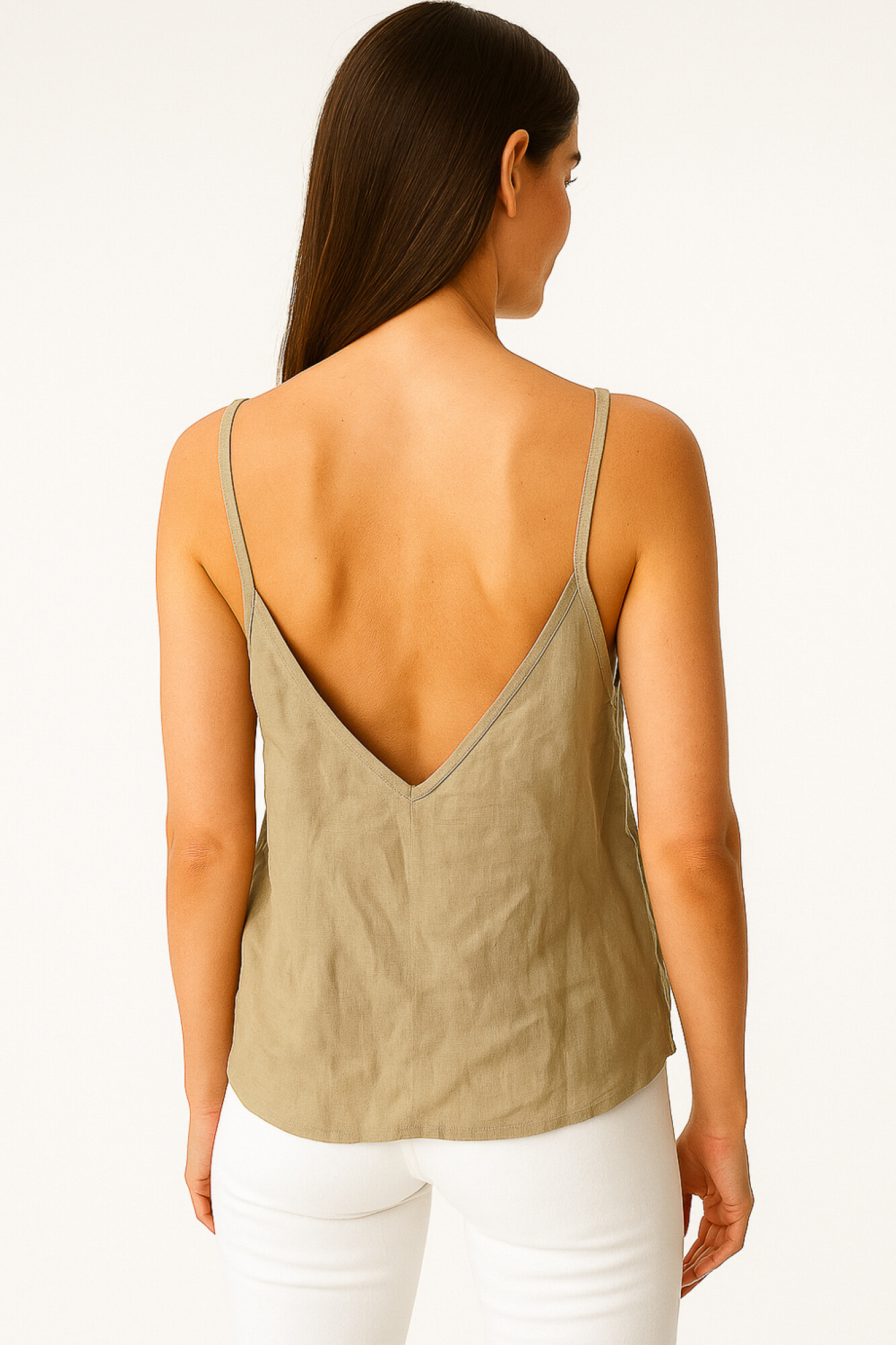 $ 611 Nuevos Recibilo en Musculosa bretel fino de lino y cuello en v