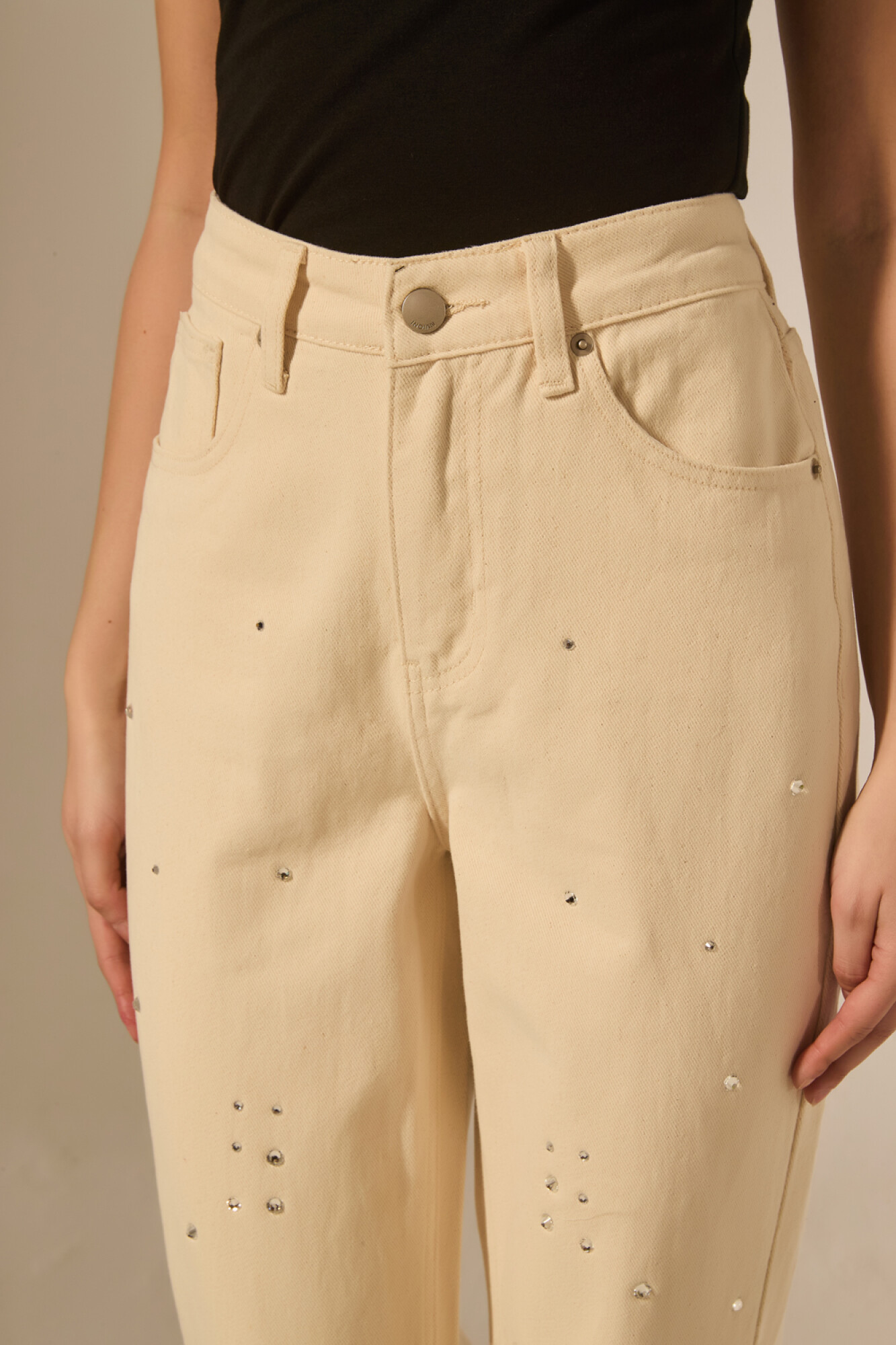 Nuevos Pantalon jean, bolsillos, strass, recto y de calce alto