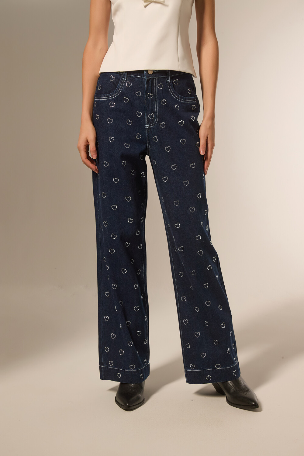 $ 1.291Pantalon jean, strass, ancho y de calce alto