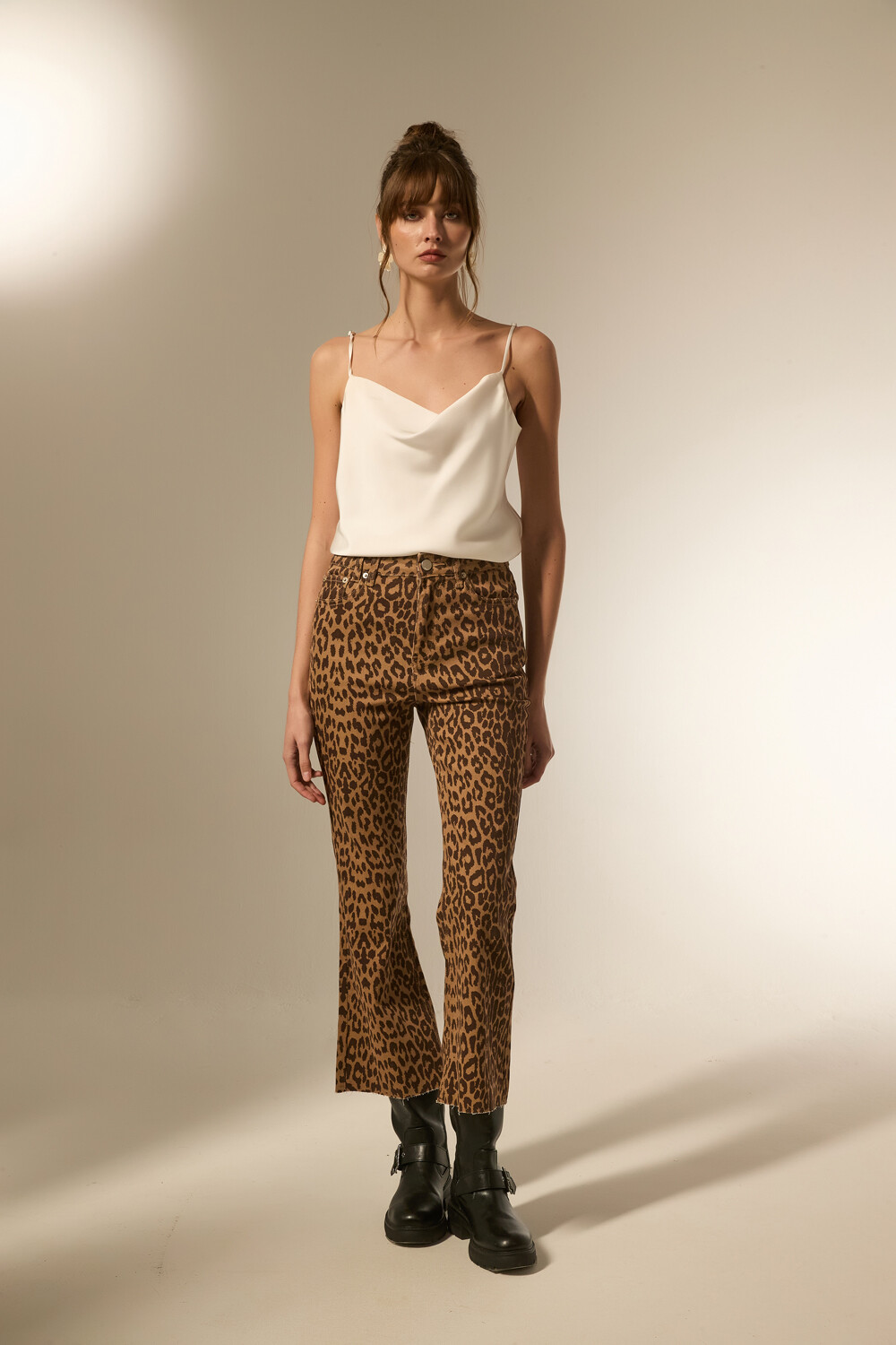 Nuevos Pantalon jean, estampado, flare y de calce alto