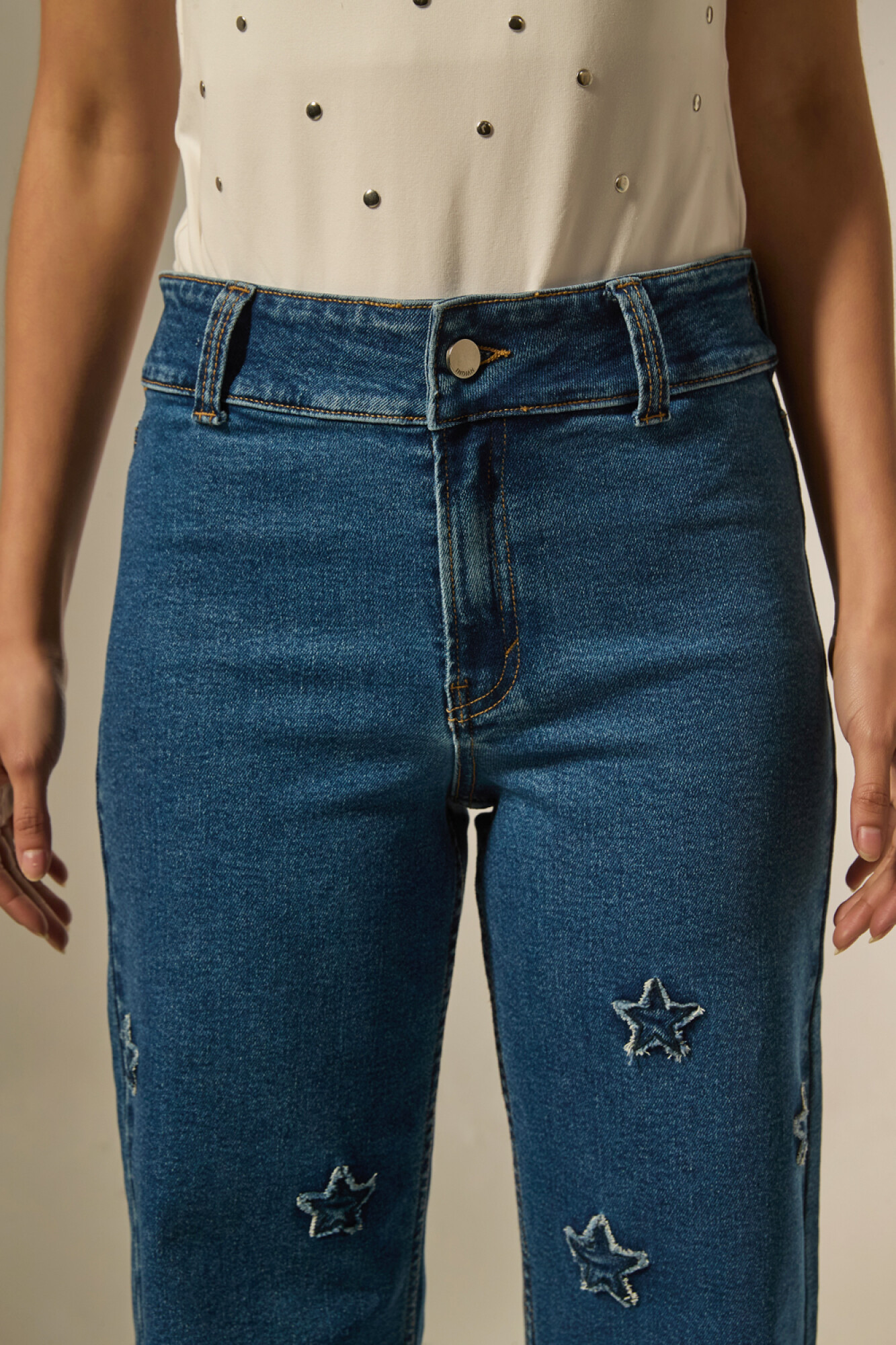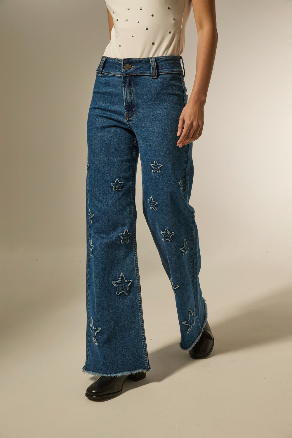 $ 917 Nuevos Pantalon jean, apliques, ancho y de calce medio