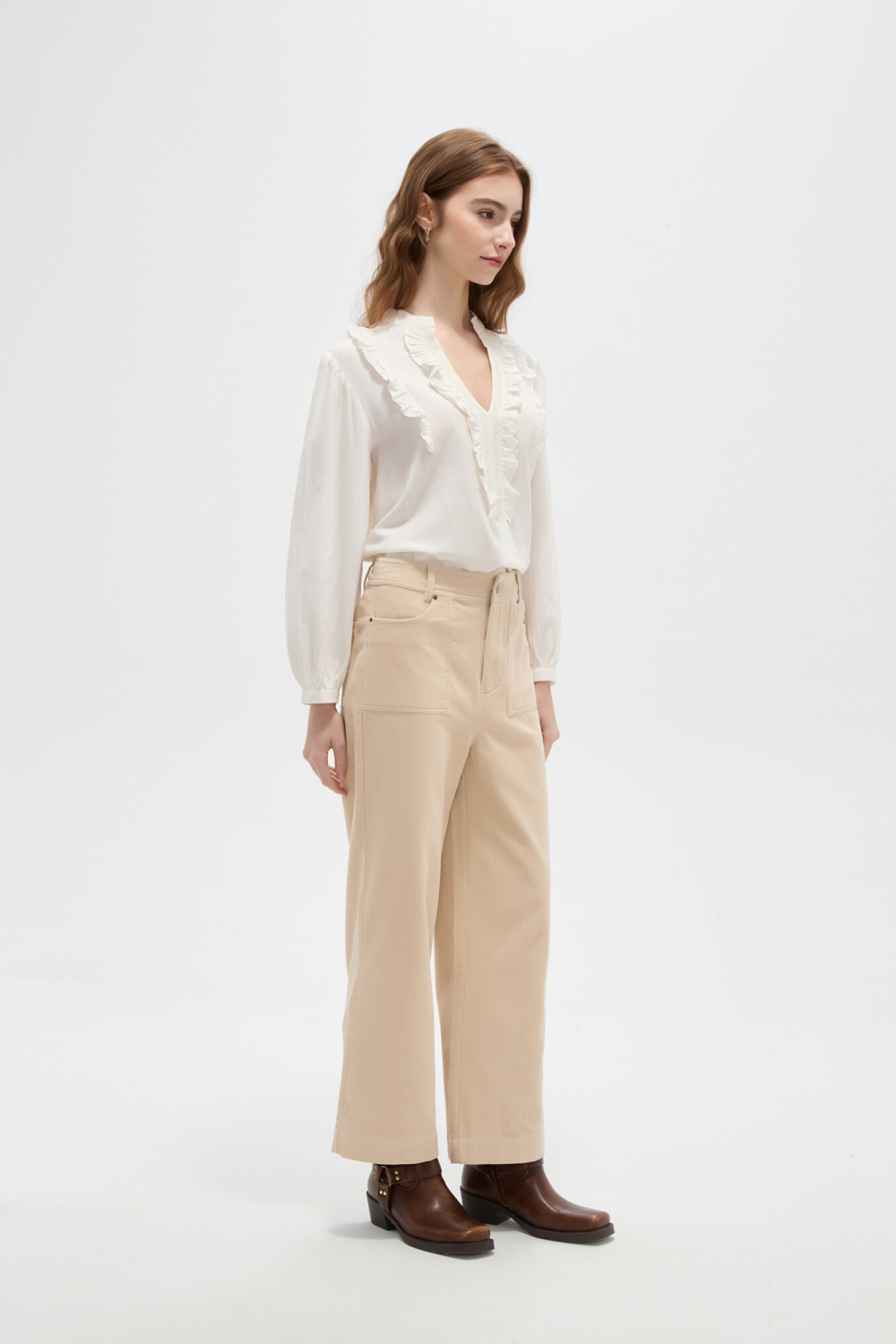 Nuevos Pantalon algodon, bolsillos, ancho y de calce alto