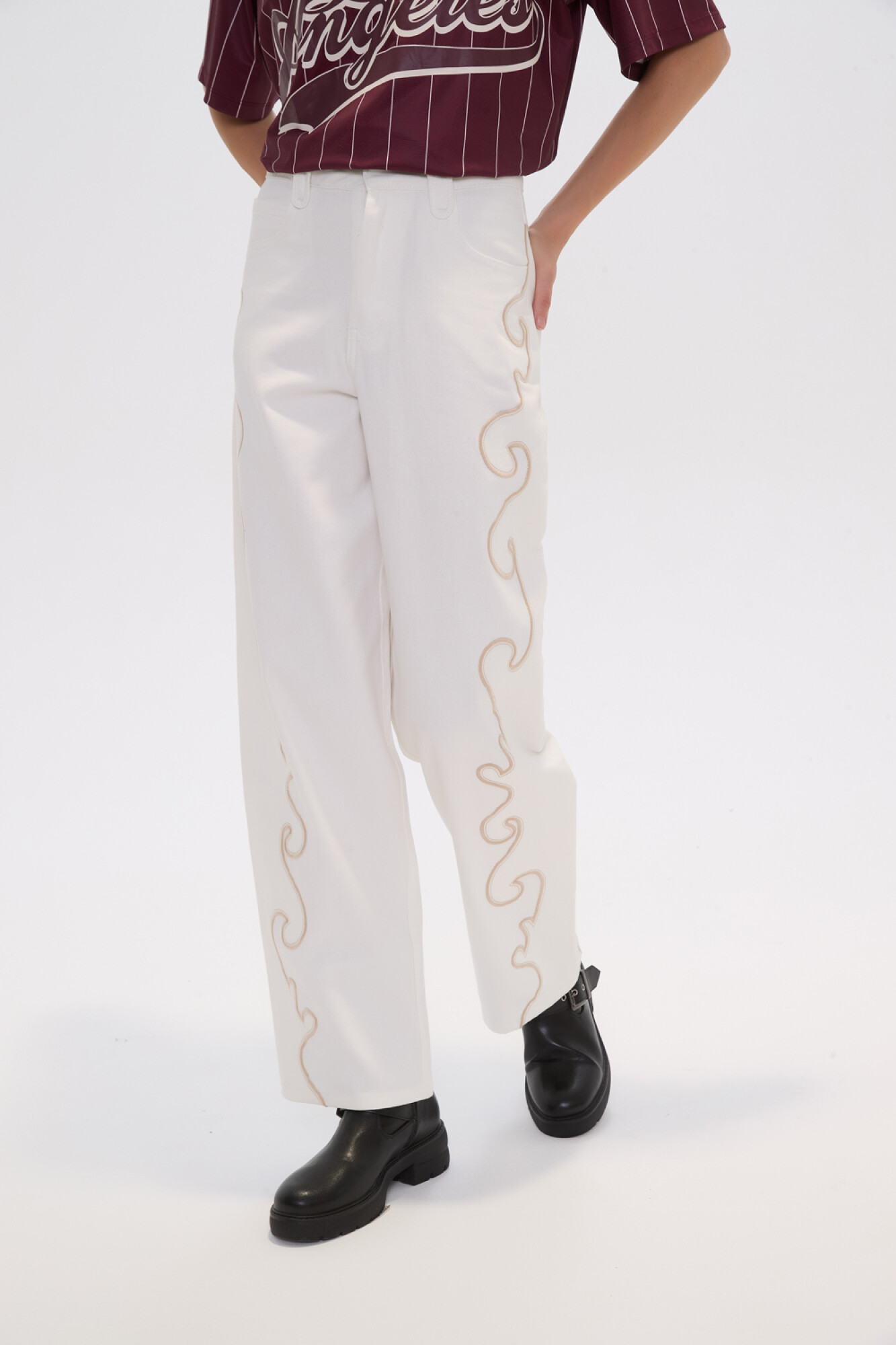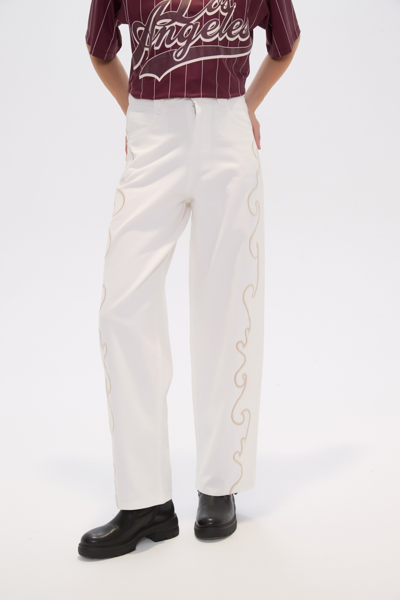 $ 1.223Pantalon algodon, patchwork, barrel y de calce alto