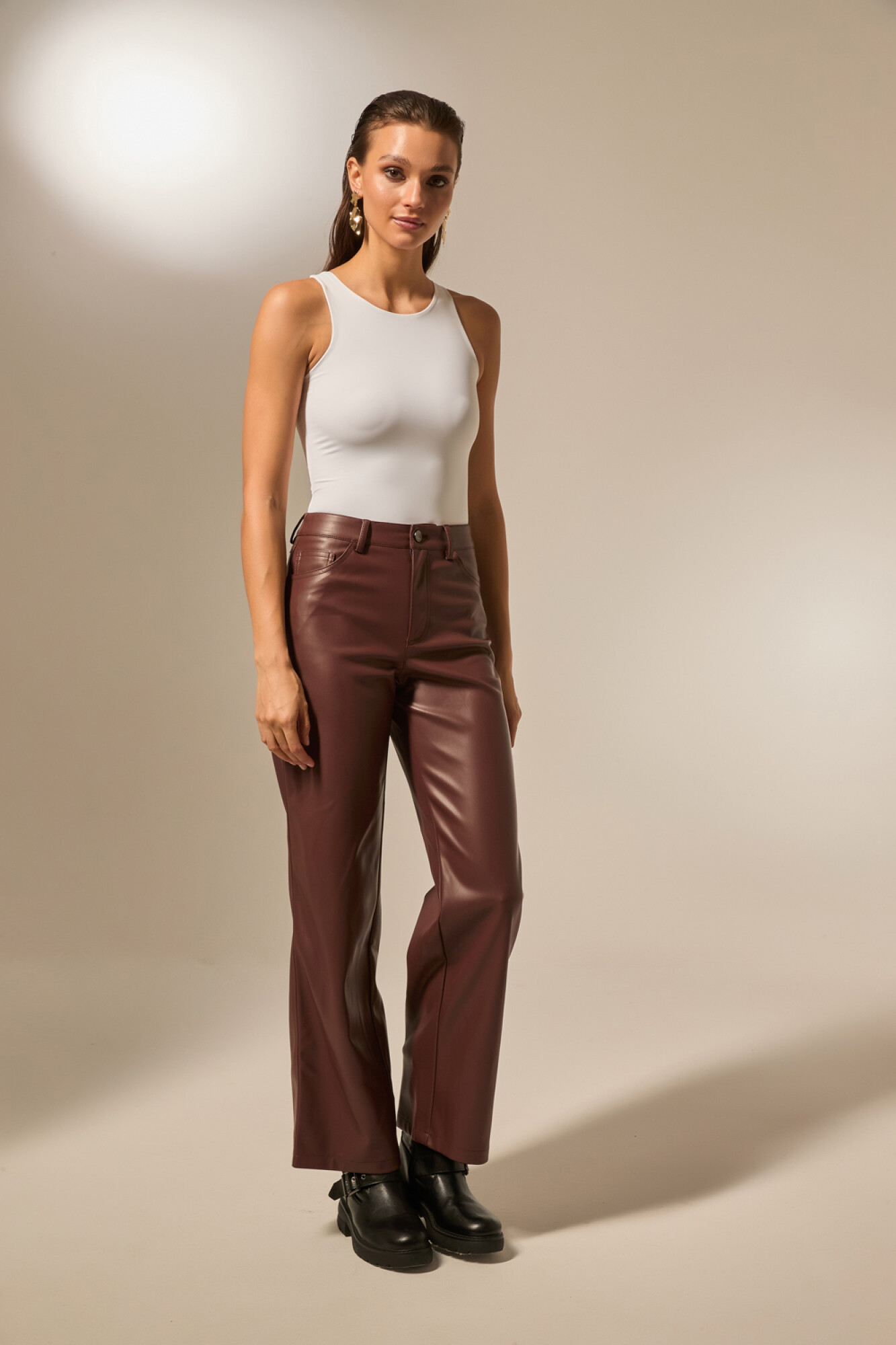 $ 1.359Pantalon eco-cuero, bolsillos, ancho y de calce bajo