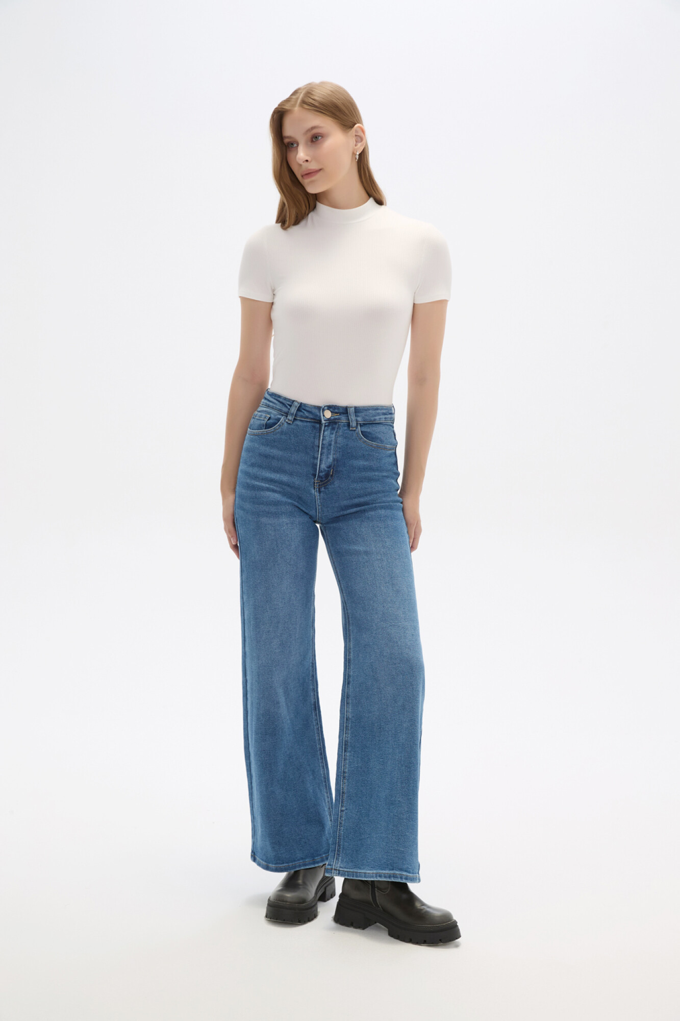 $ 1.087Pantalon jean, bolsillos, ancho y de calce alto