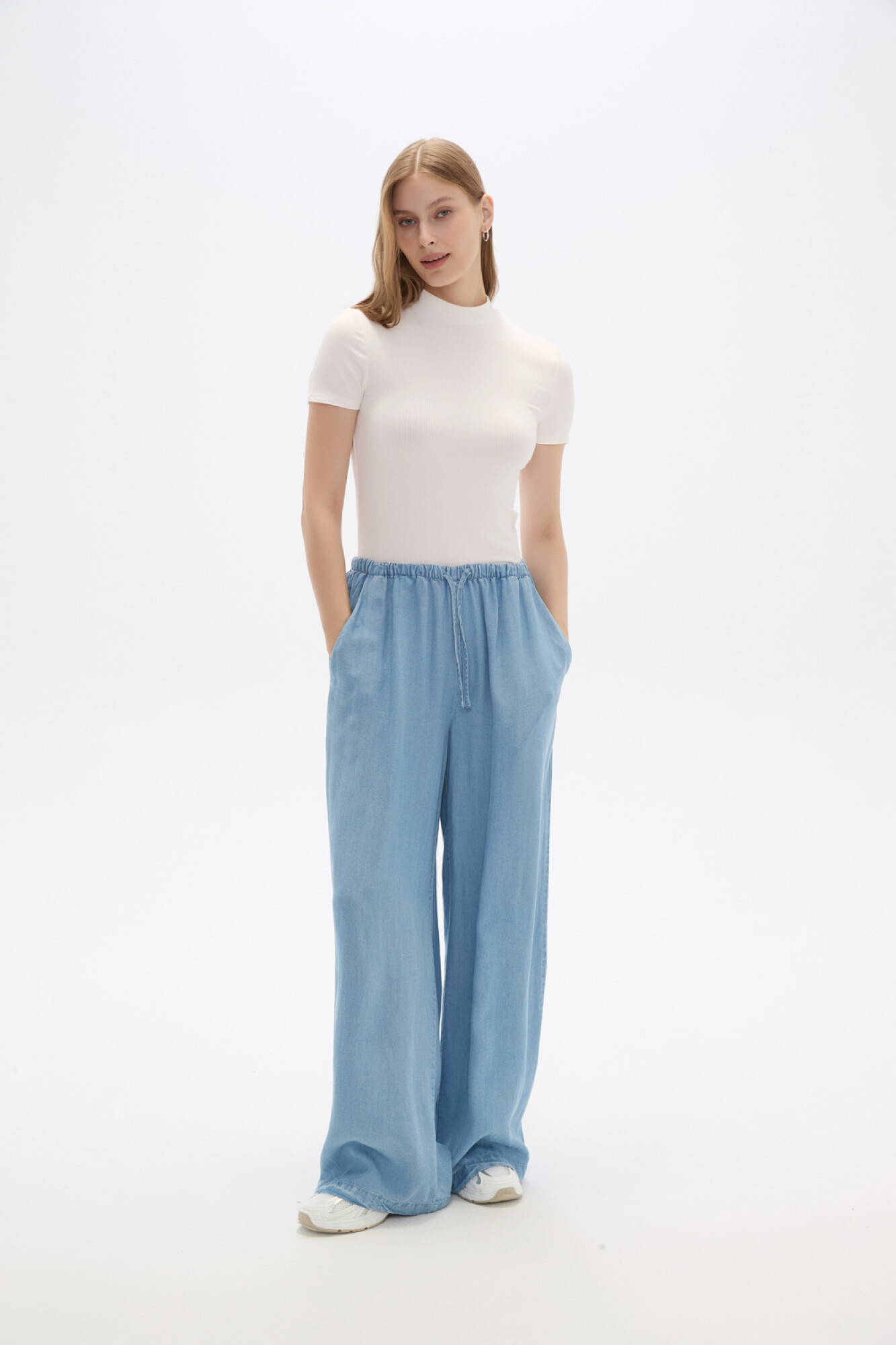 Nuevos Pantalon lyocell, bolsillos, ancho y de calce medio