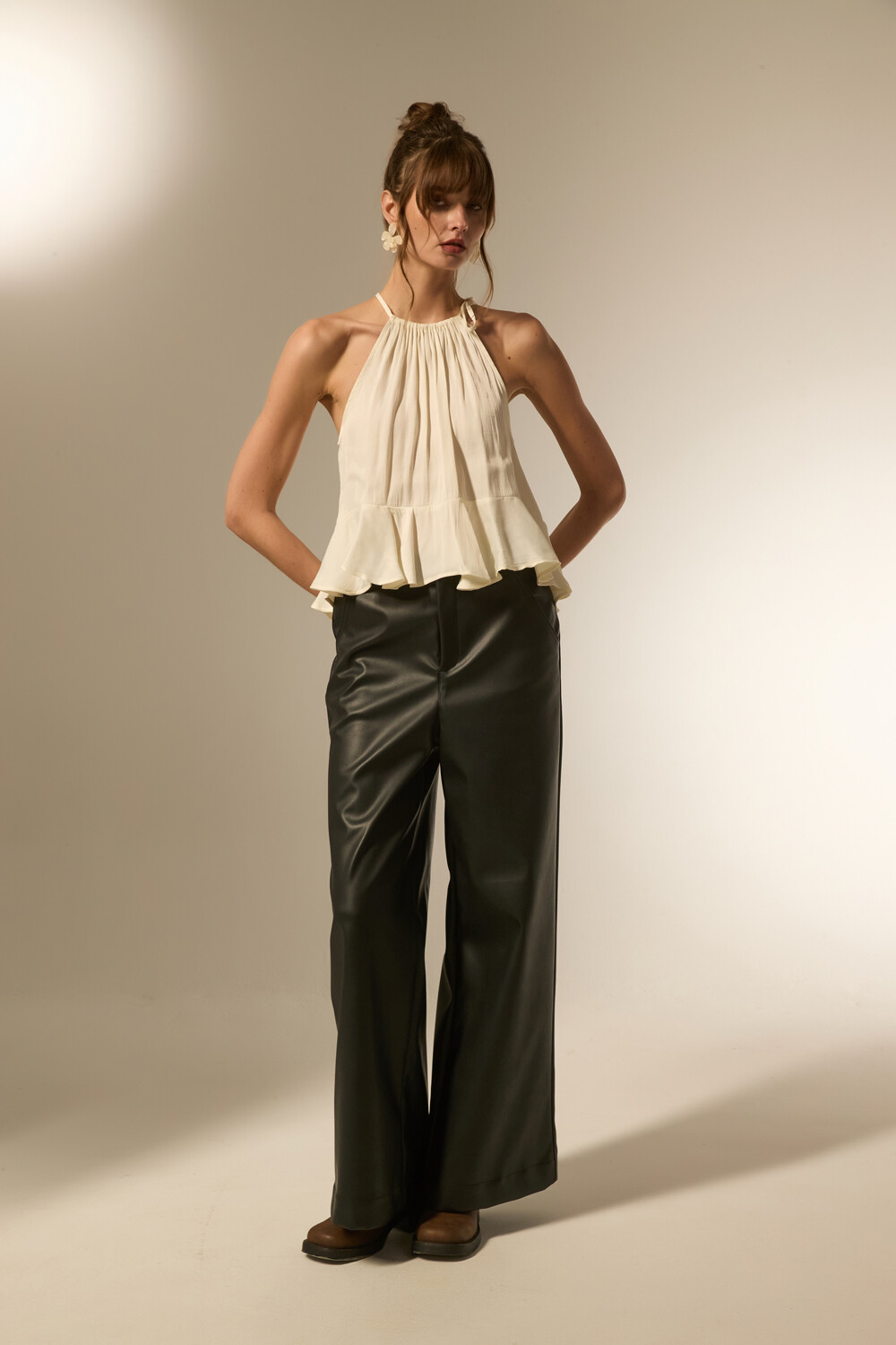 $ 1.359Pantalon eco-cuero, ancho y de calce alto