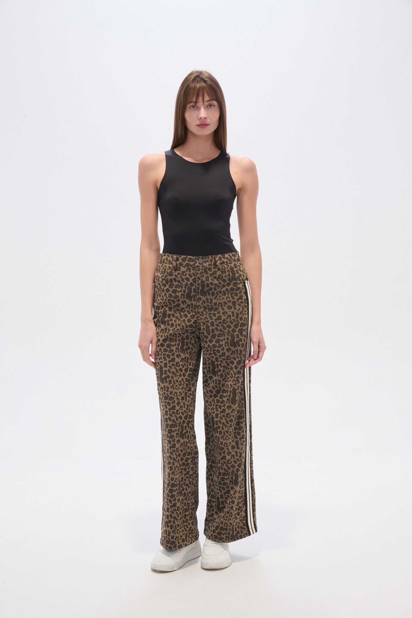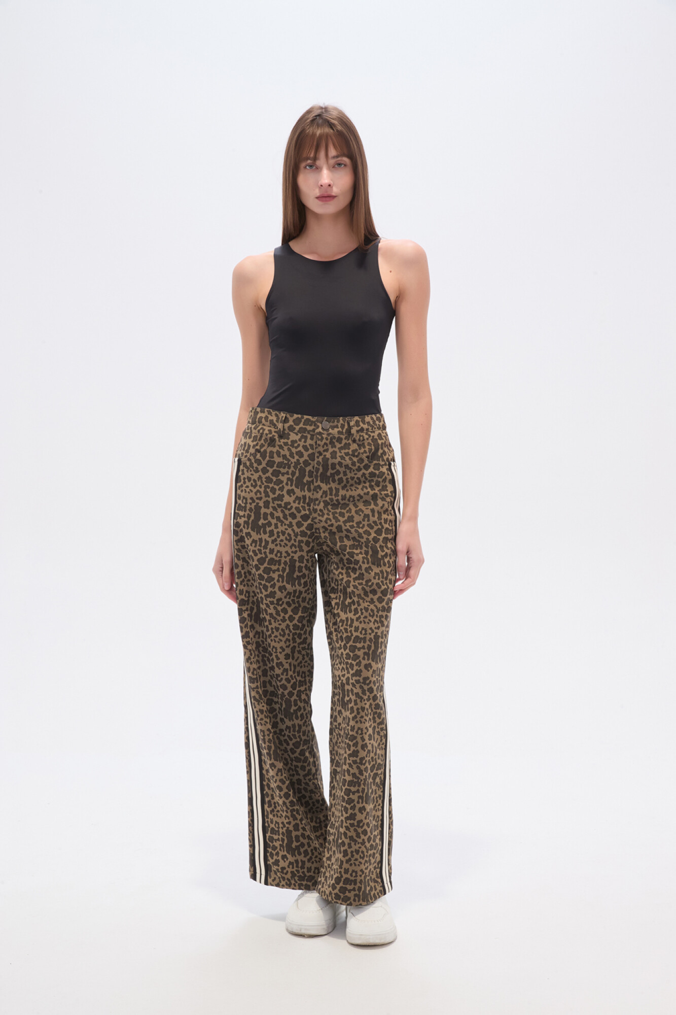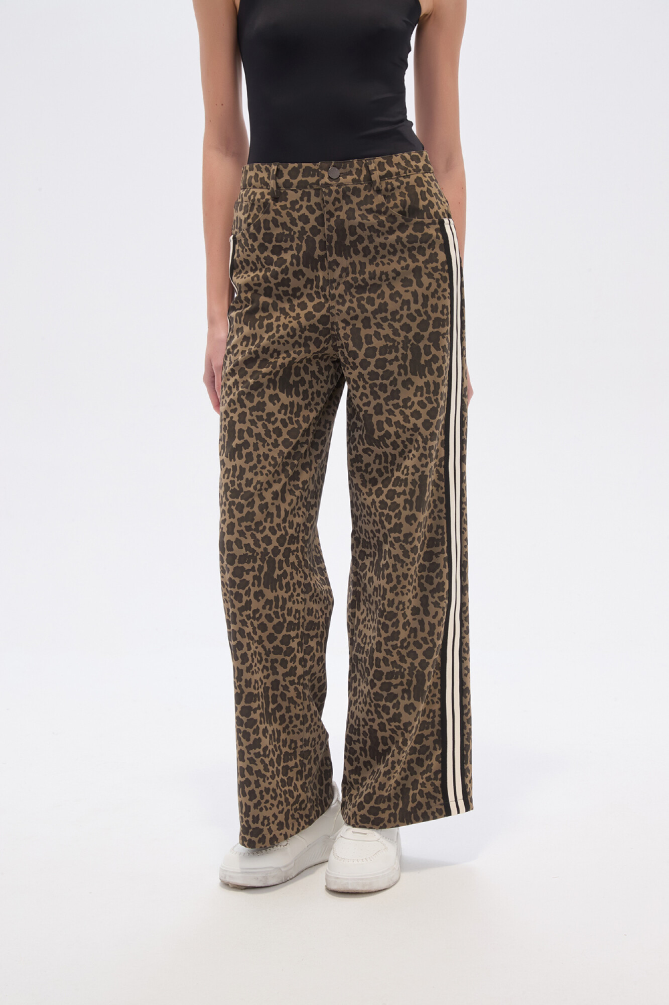 Nuevos Pantalon eco-cuero, estampado, ancho y de calce medio