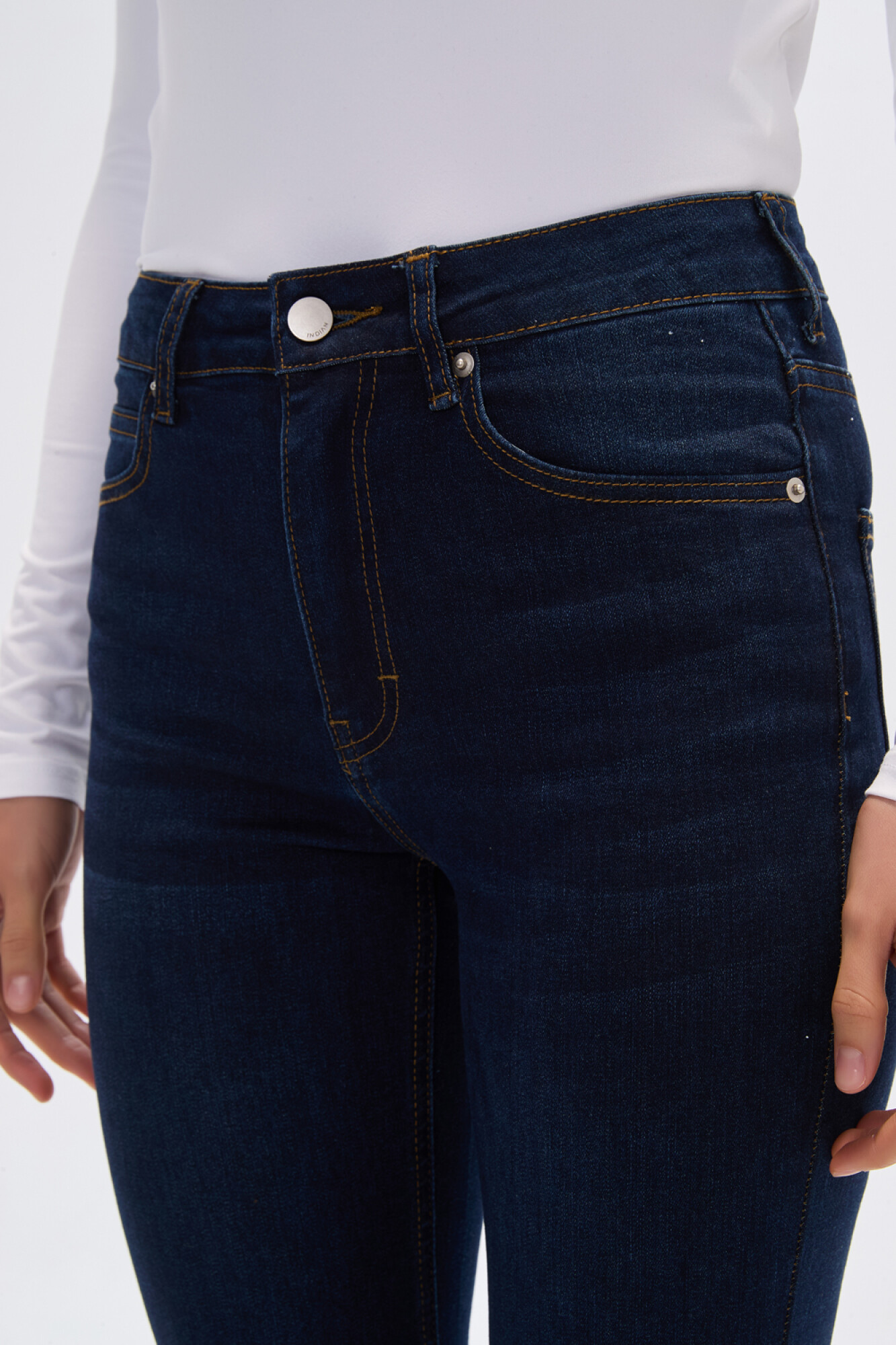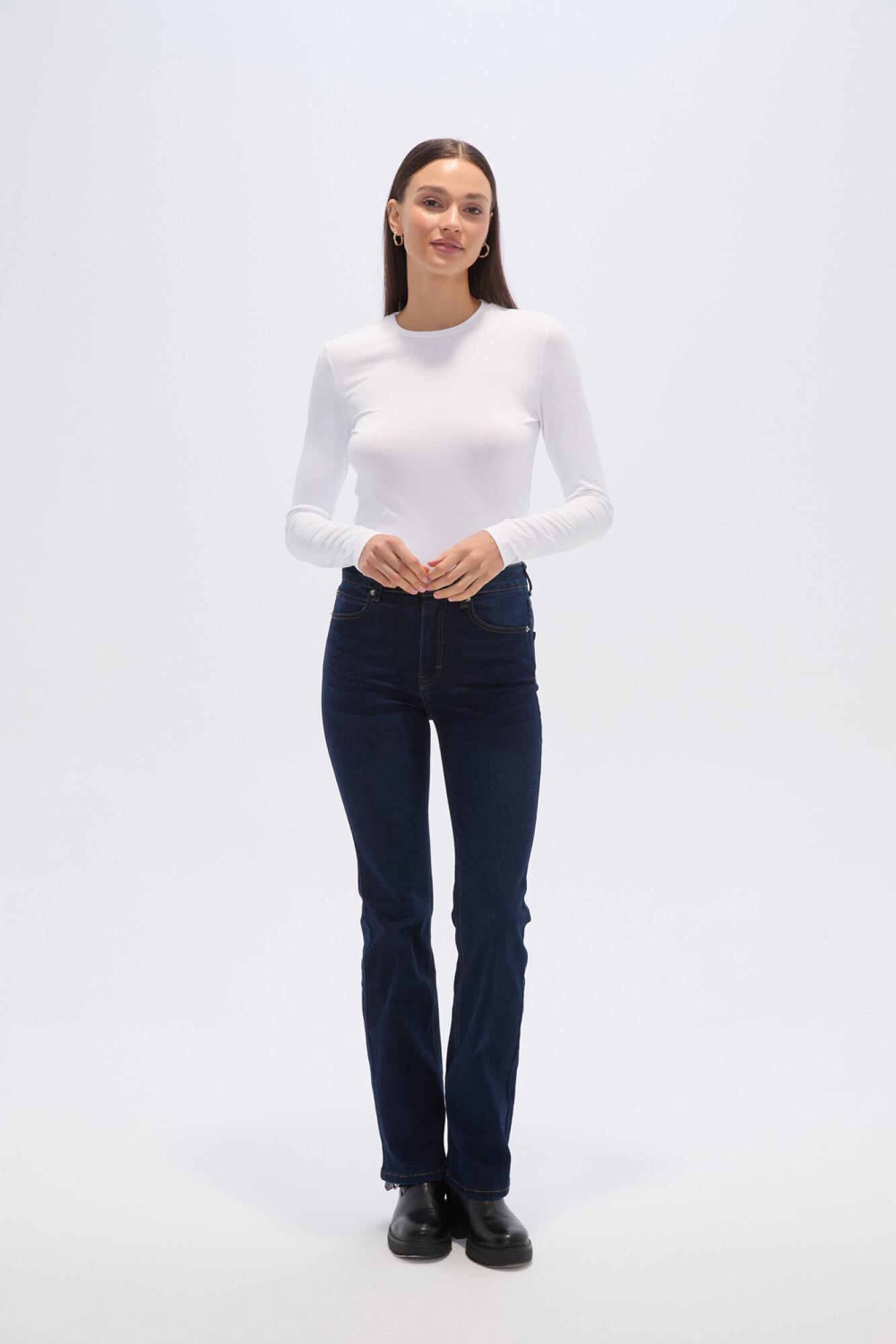 $ 892Pantalon jean, recto y de calce alto