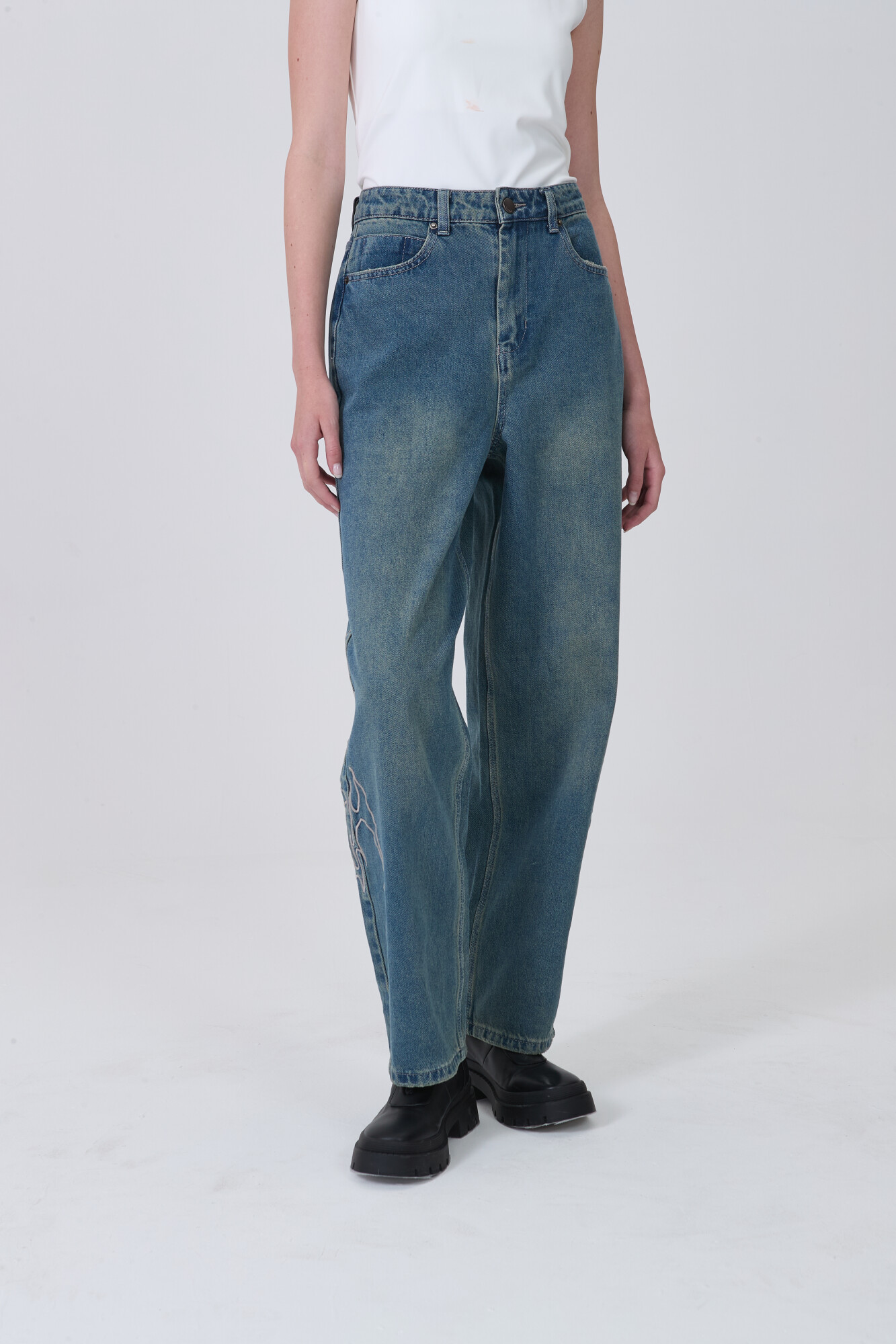 $ 1.139 Nuevos Pantalon jean, bordado, ancho y de calce bajo