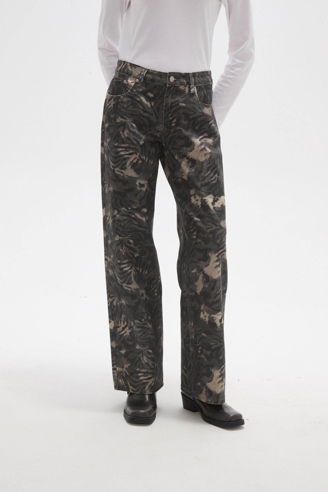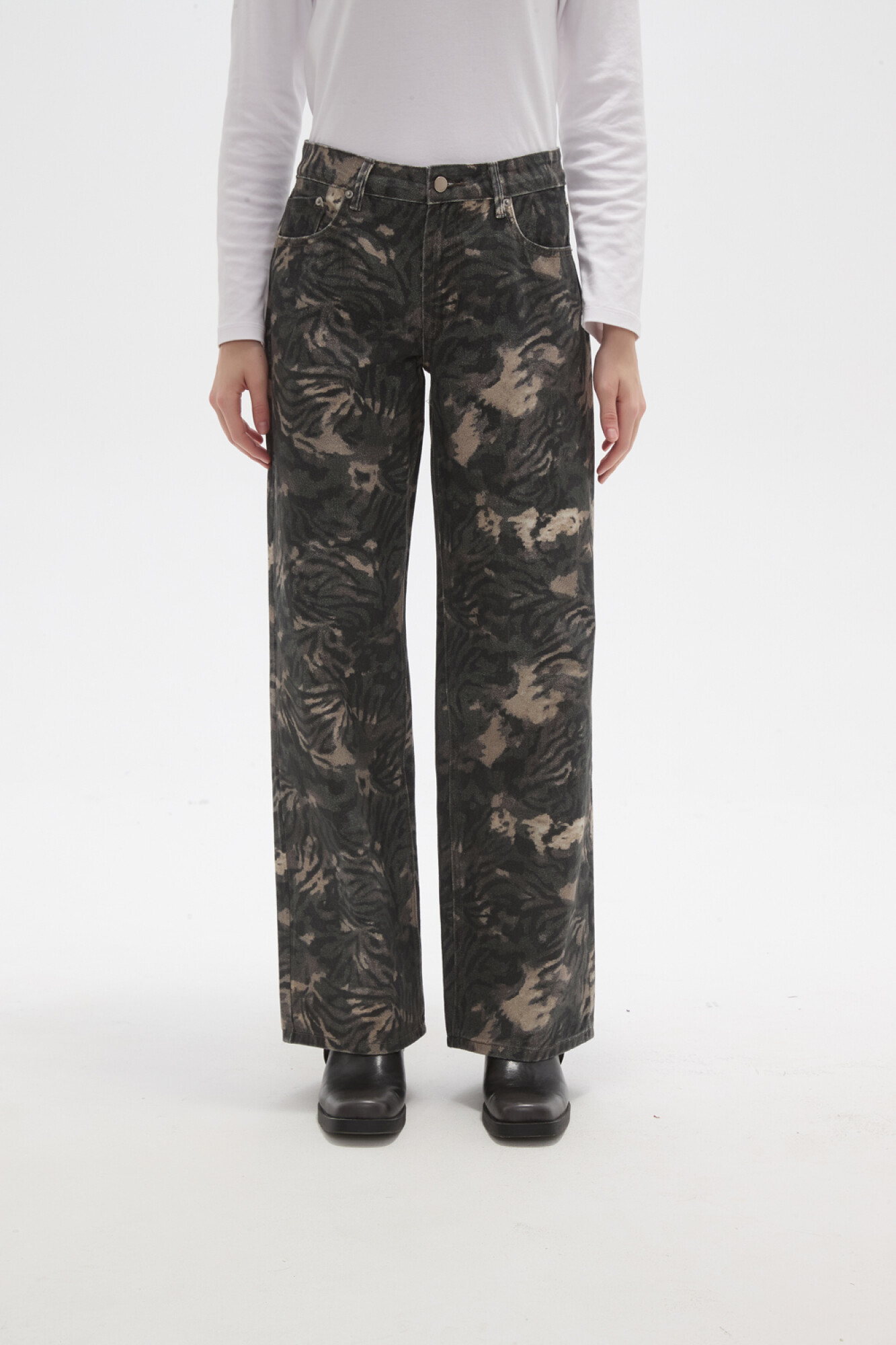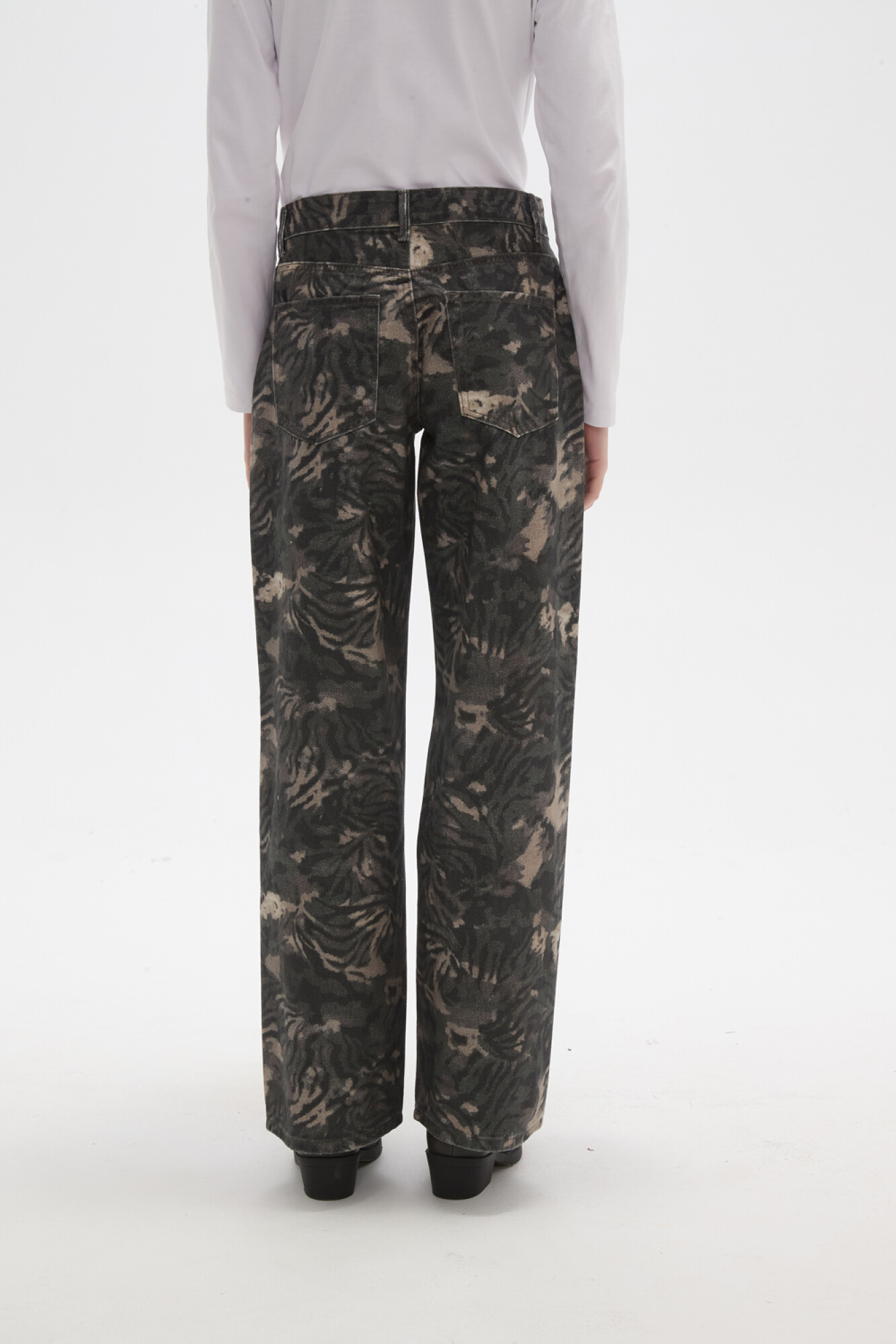 $ 1.155Pantalon jean, estampado, ancho y de calce bajo