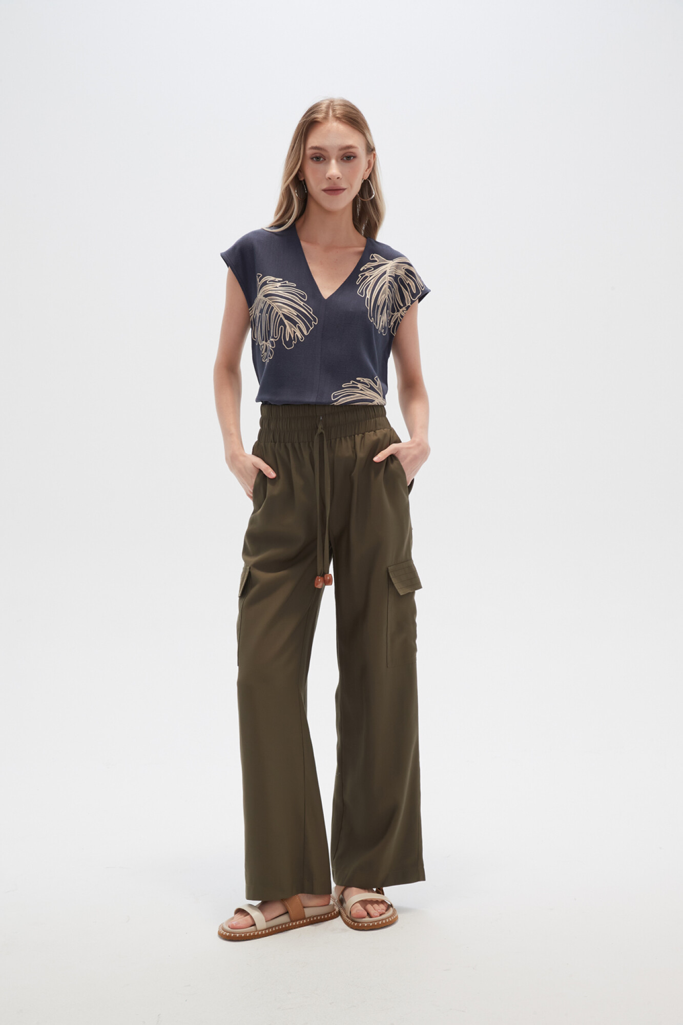 Nuevos Pantalon viscosa, con bolsillo, cargo y de calce alto