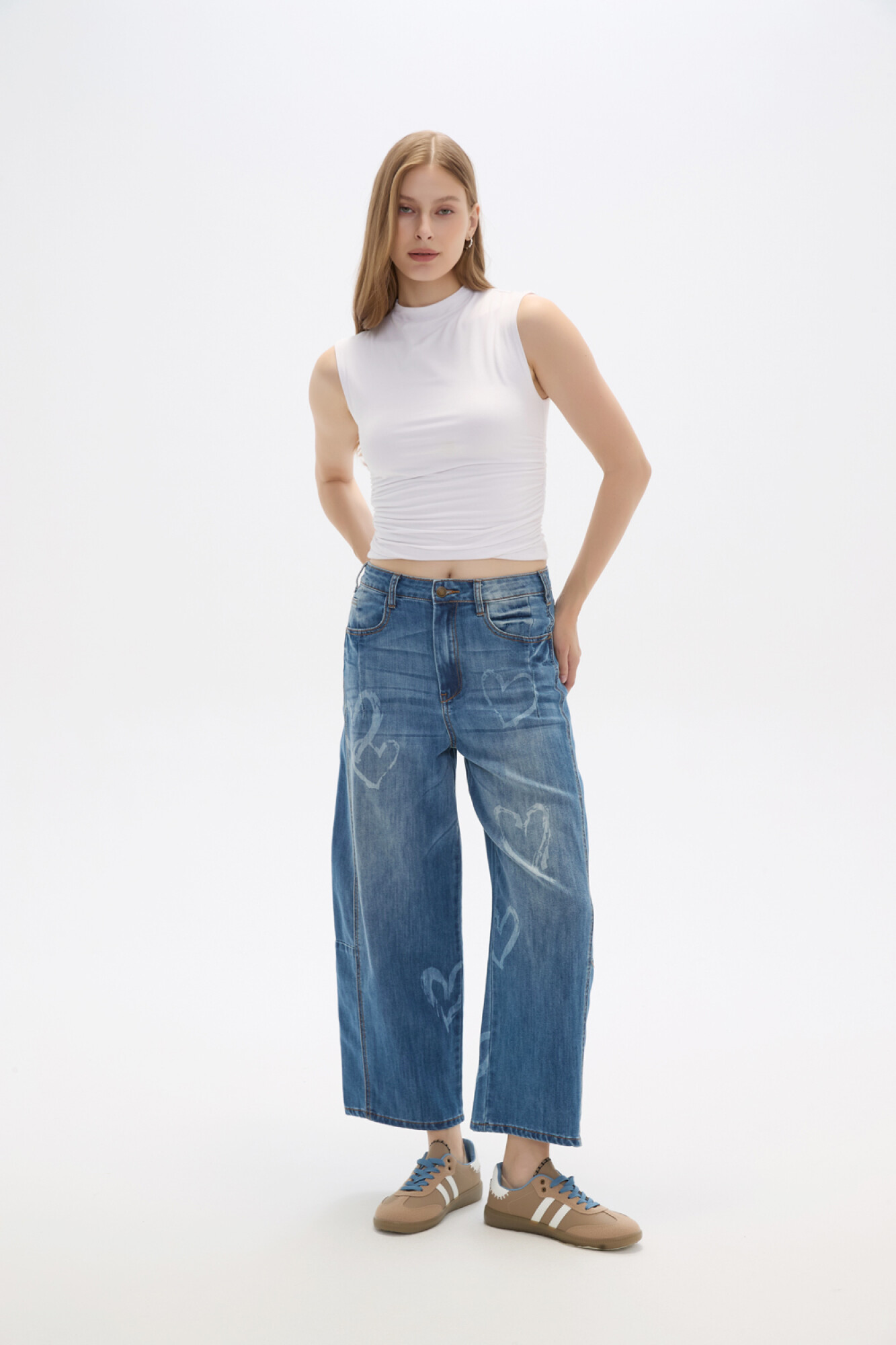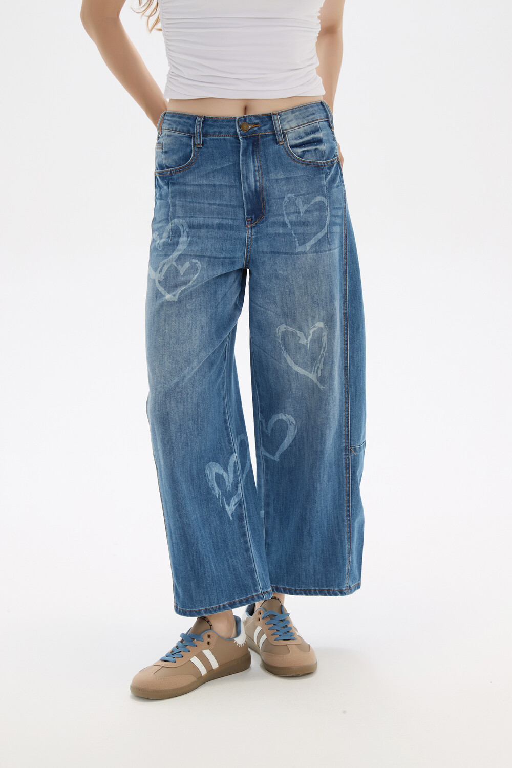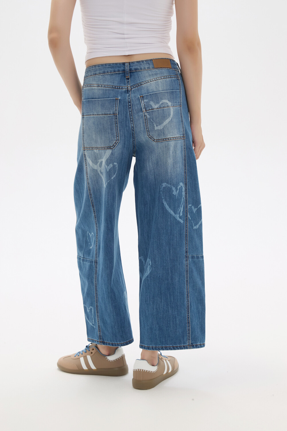 $ 1.223Pantalon jean, bolsillos, estampado, barrel y de calce alto